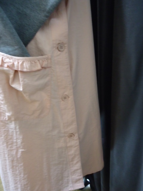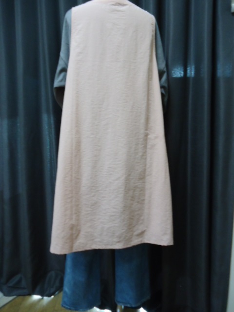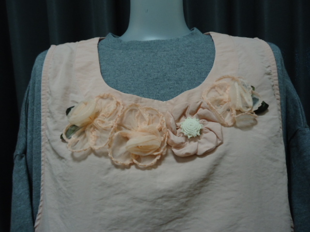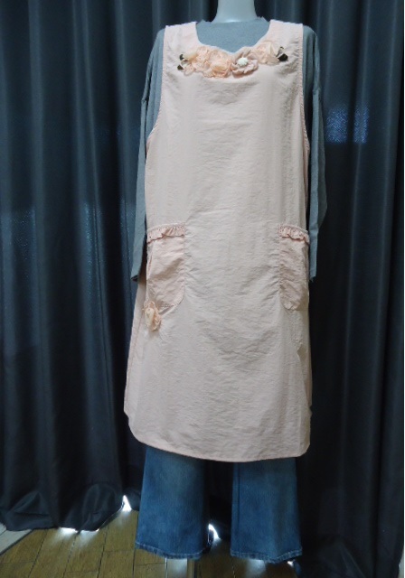 かわいいエプロン  かぶり 無地ピンク色 ★bonte★ ナイロン100% M~L寸 着丈95cm Kー5769