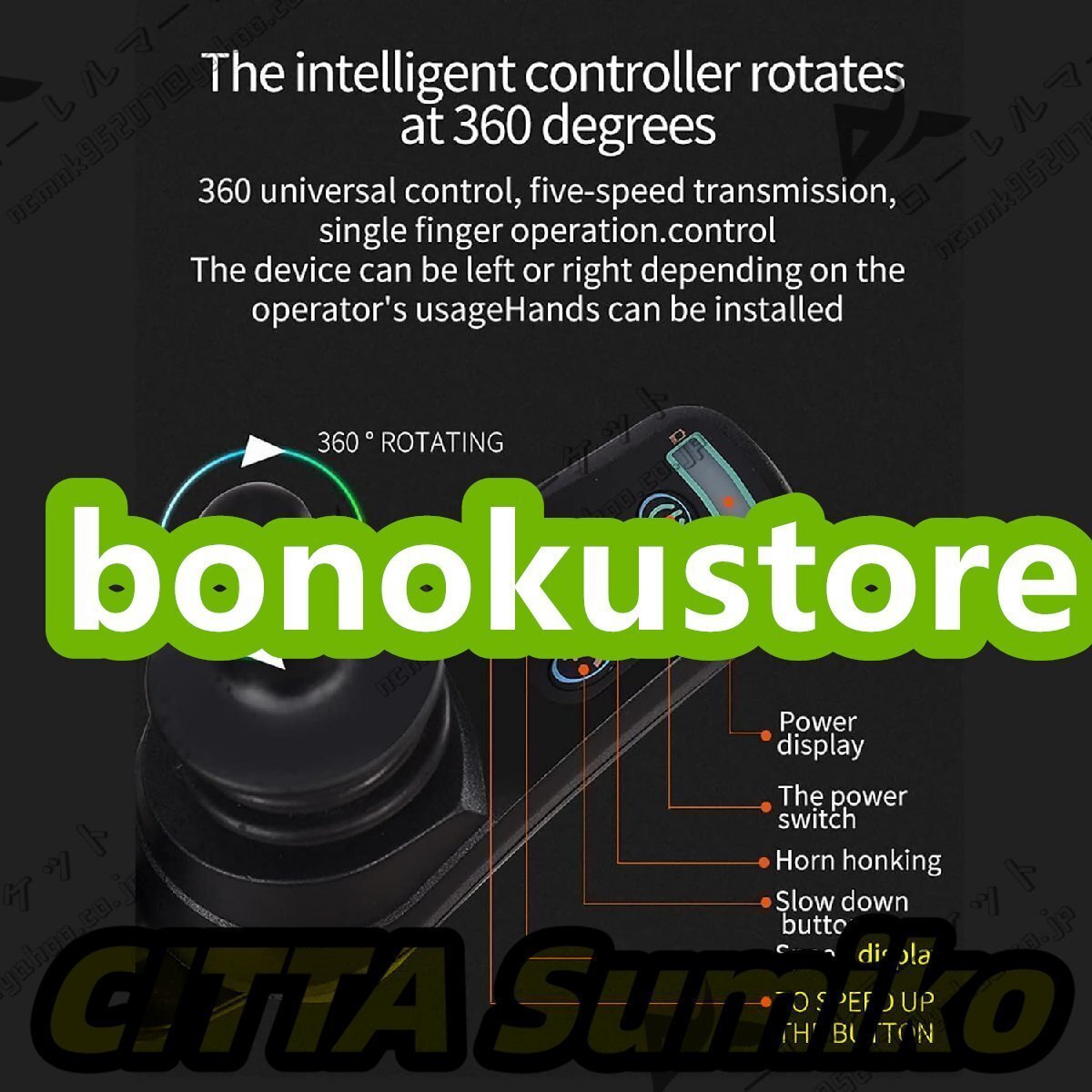 - 360°ジョイスティックを使用して運転します。ジョイスティックは左側または右側に取り付けることができ、速度を簡単に調整し、加速、減速、ホーンを完全に簡単に調整できます。