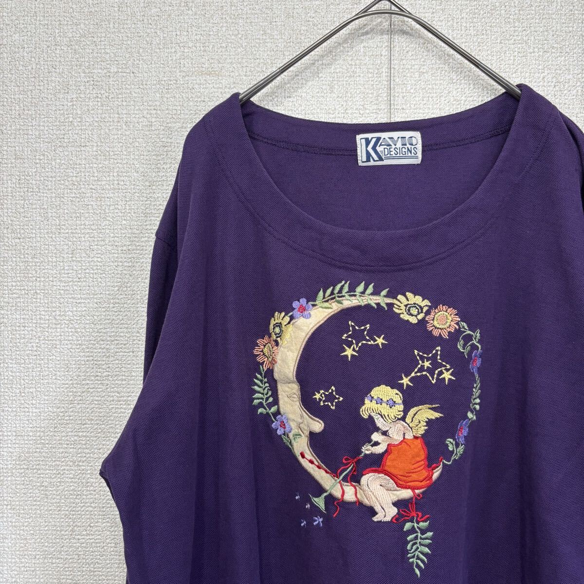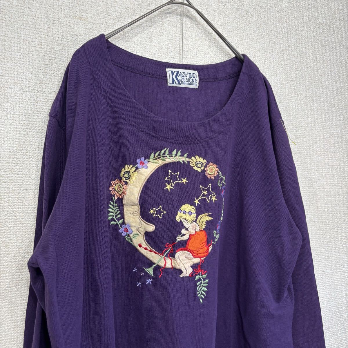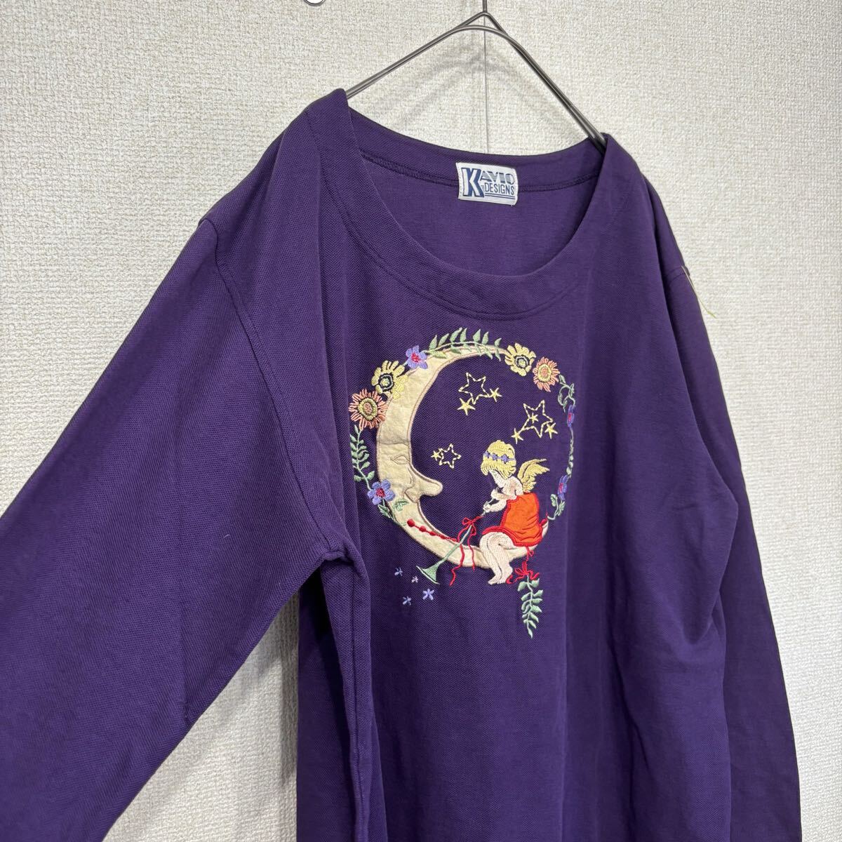 アメリカ古着 長袖tシャツ ロンT 刺繍 イラスト L相当 2558