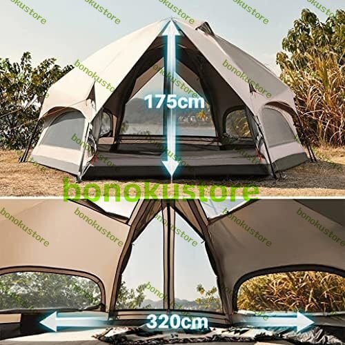 6人用の広々としたファミリーテント: 寸法は320(L) x 280(W) x 155(H) CMです。 4つの寝袋に適しています。 アウトドアで充実した時間を過ごしたいご家族に最適です。