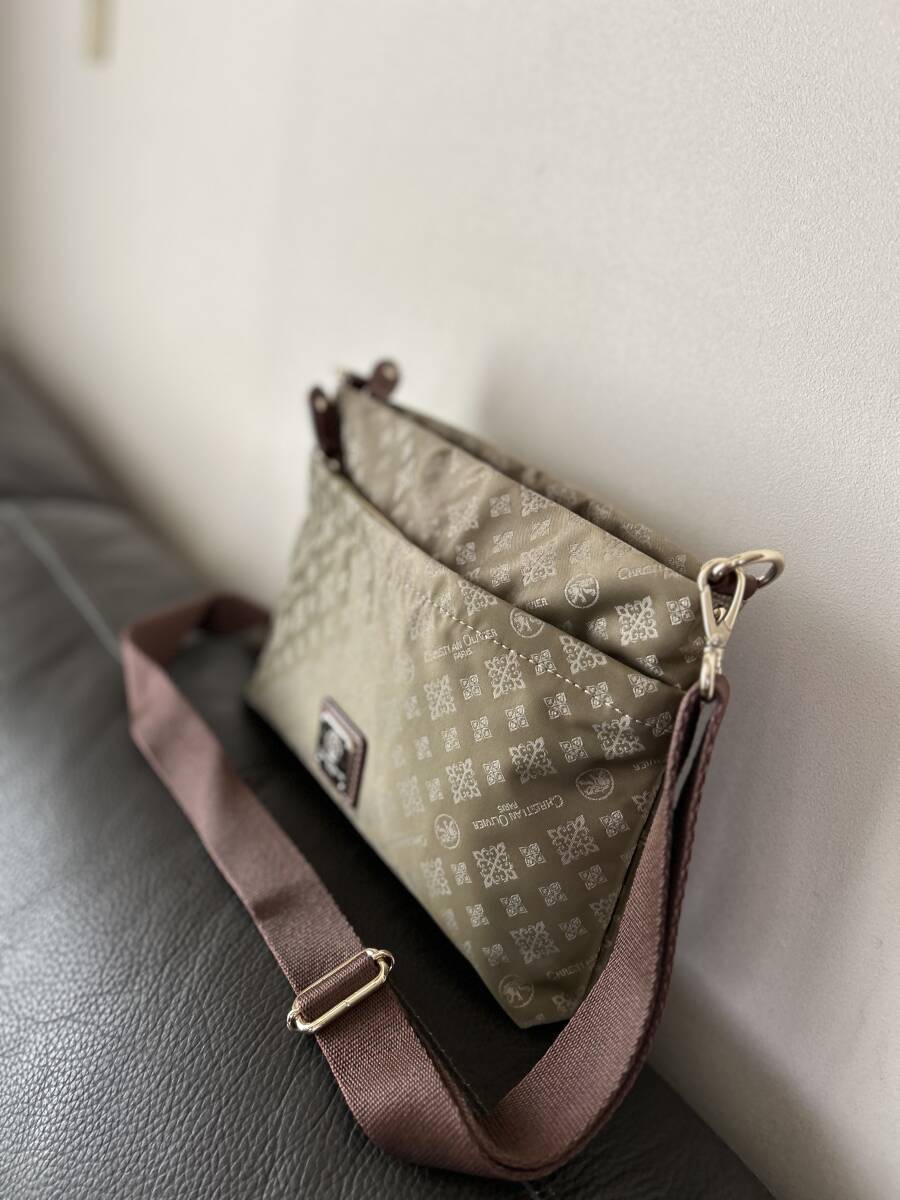目立った傷、汚れもなくとても綺麗です。サイズは横幅最大25、5㎝、高さ19㎝、奥行き14㎝、ショルダーの長さ135㎝で、自由に調節可能。(素人採寸の為多少の誤差はお許しください。中に詰め物をして計測。)内側にオープンポケット1個、ファスナーポケット1個、外側にファスナーポケット3個有り。同梱可能(3日以内)他にも出品していますので、ご覧ください