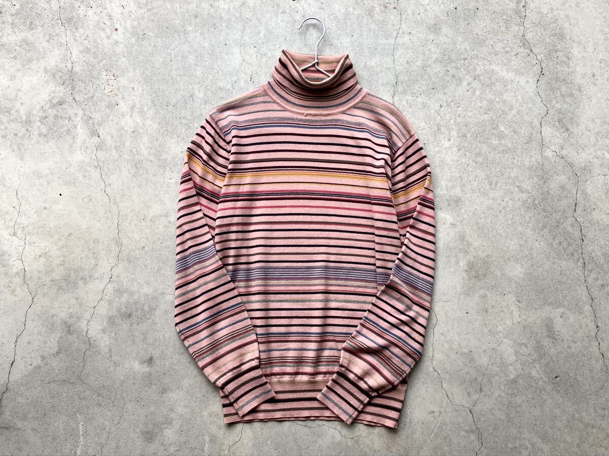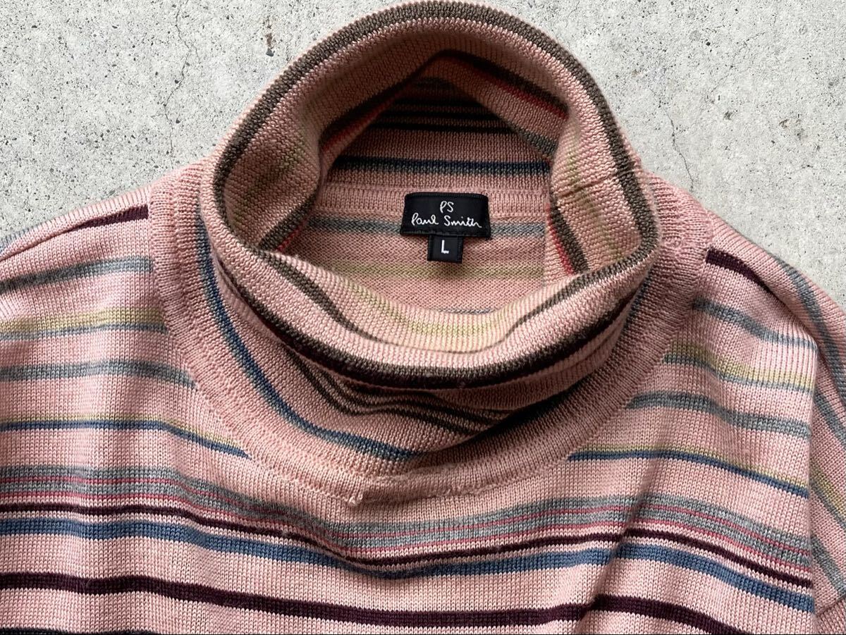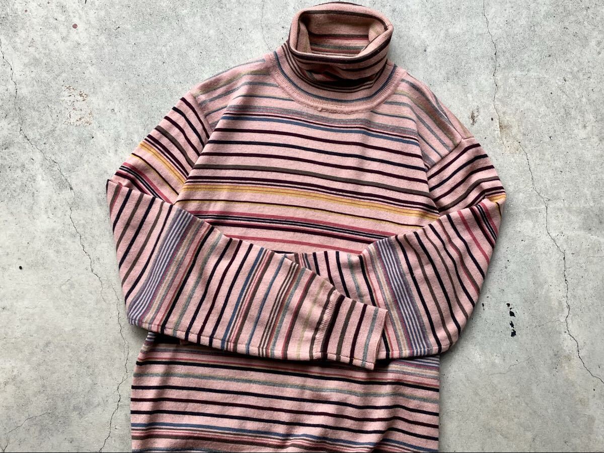Paul Smith タートルネック仕様 ハイゲージ ウールニットセーター L ポールスミス メンズ ボーダー