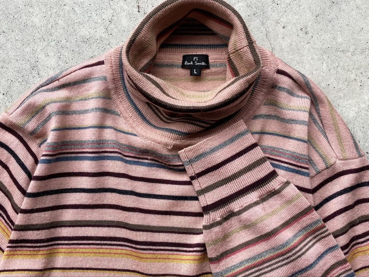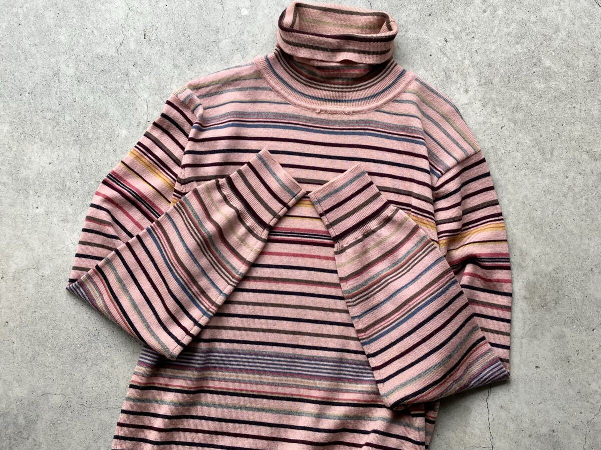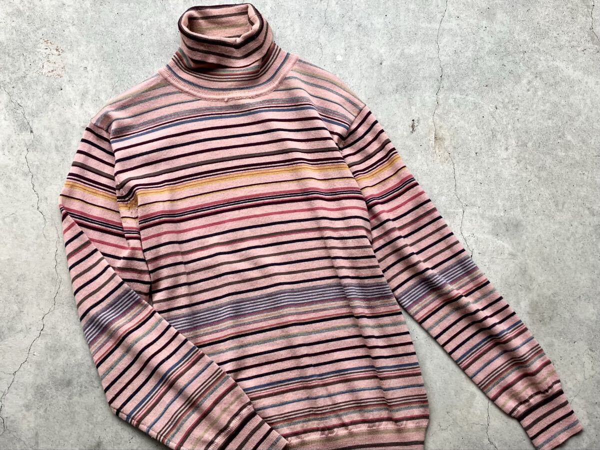 Paul Smith タートルネック仕様 ハイゲージ ウールニットセーター L ポールスミス メンズ ボーダー