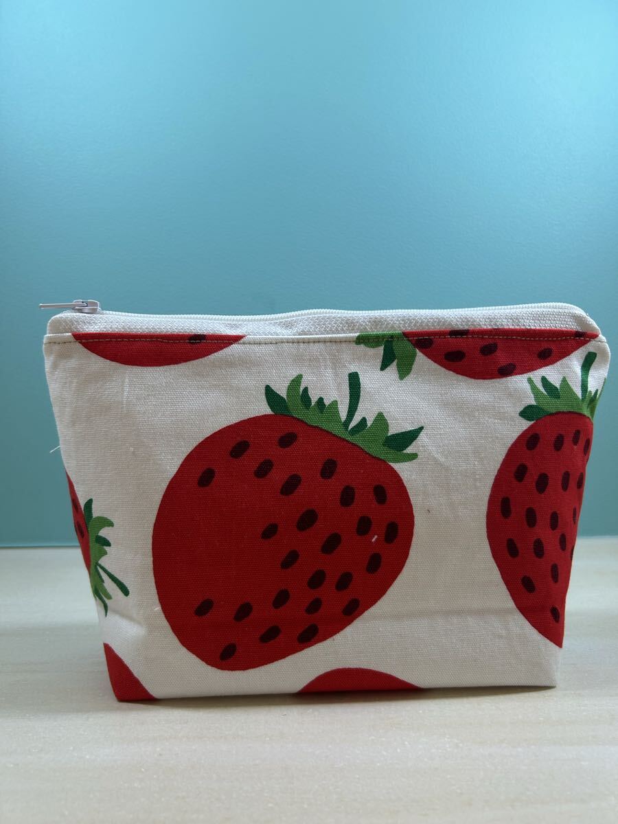 ハンドメイド☆ポーチ ホワイト 大きないちご