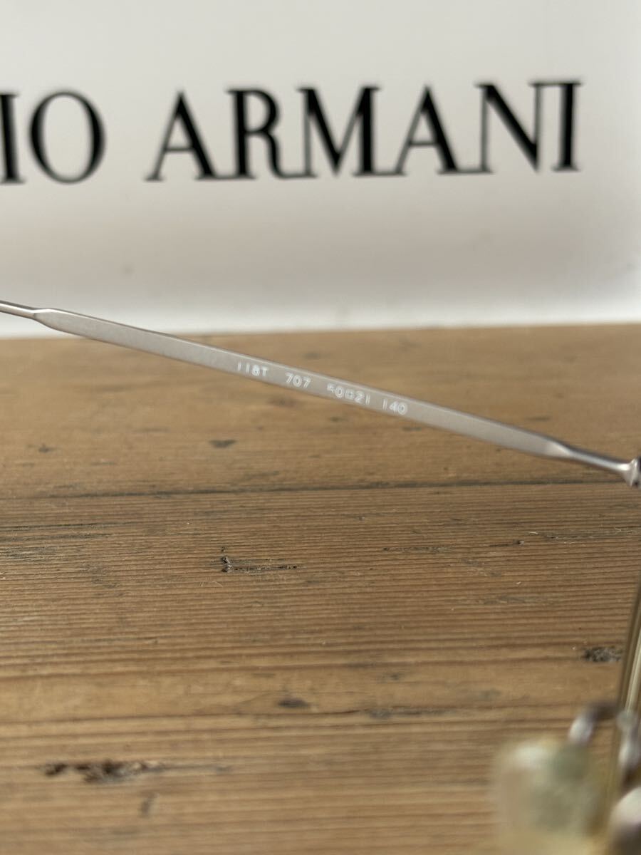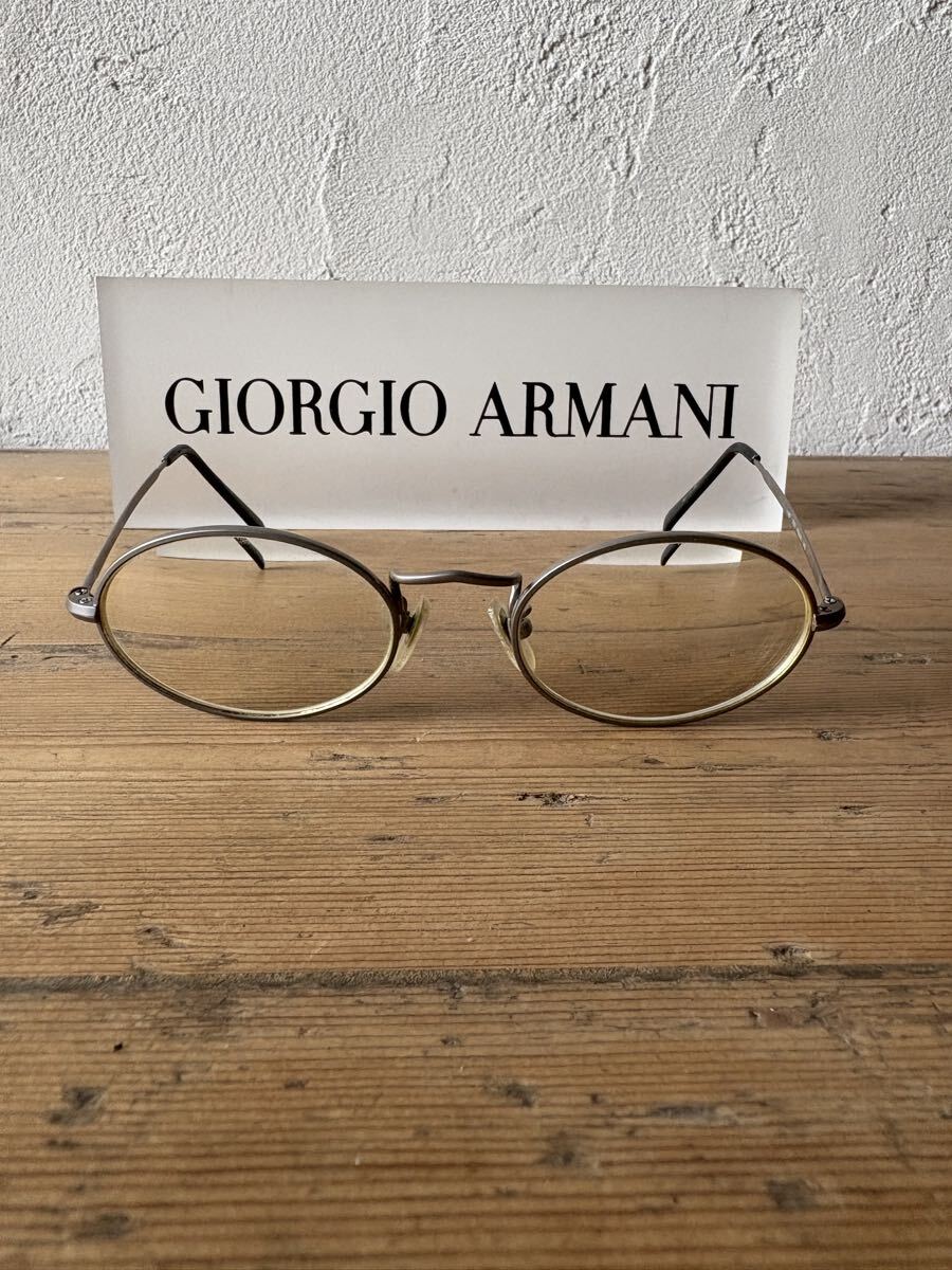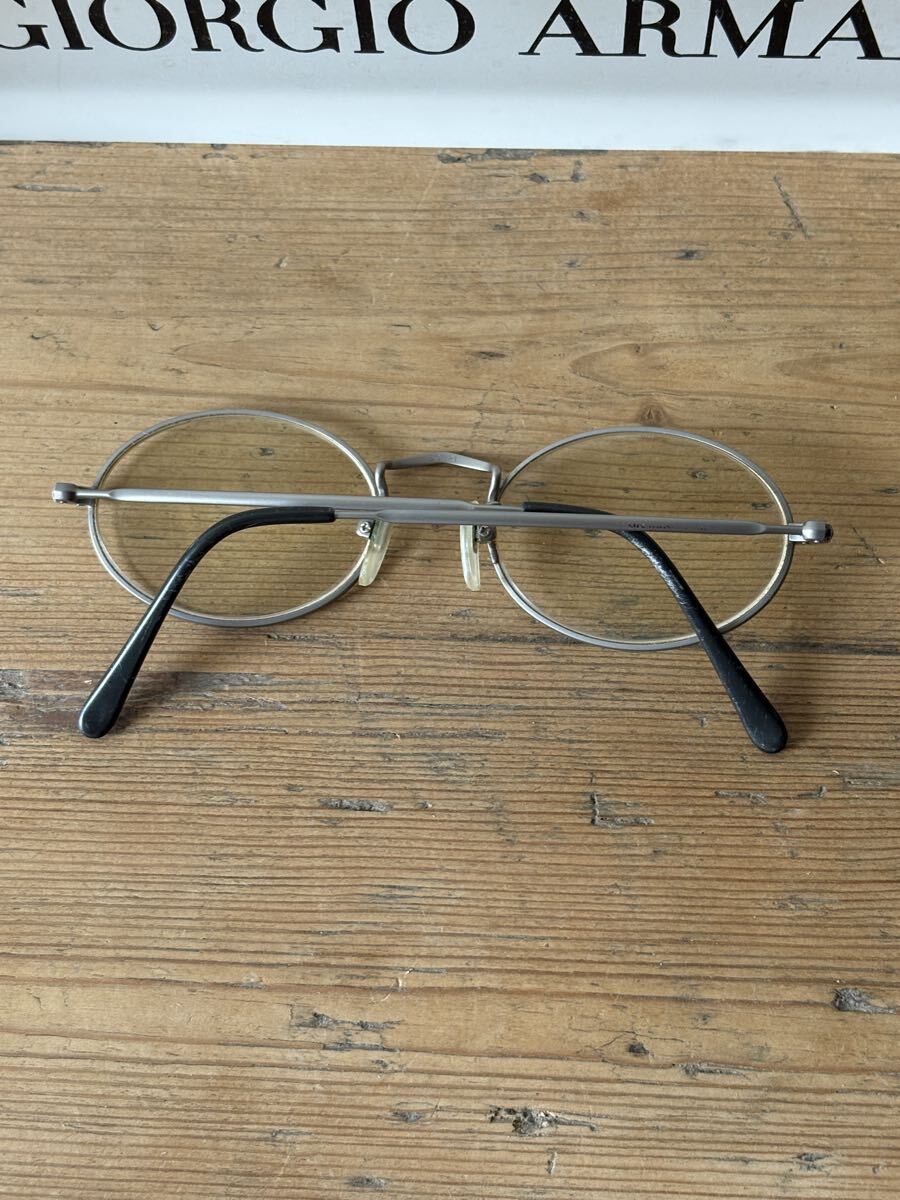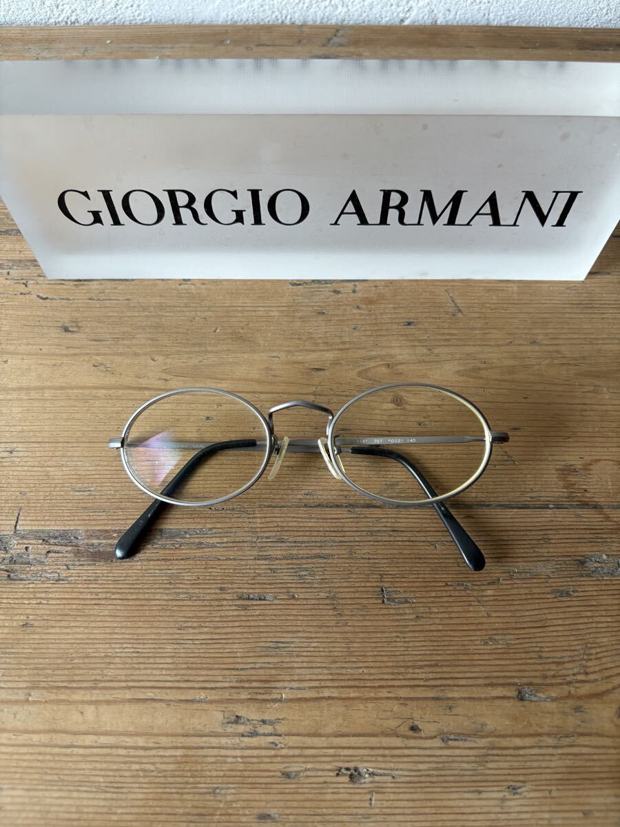 中古のGIORGIO ARMANIのメガネフレームです。チタン製なので軽くスタイリッシュな感じです。度付きのレンズが装着済みですので、交換してご使用ください。状態は写真でご確認ください。使用感はありますが、全体的にはキレイな状態だと思いますので、まだまだご使用いただけると思います。