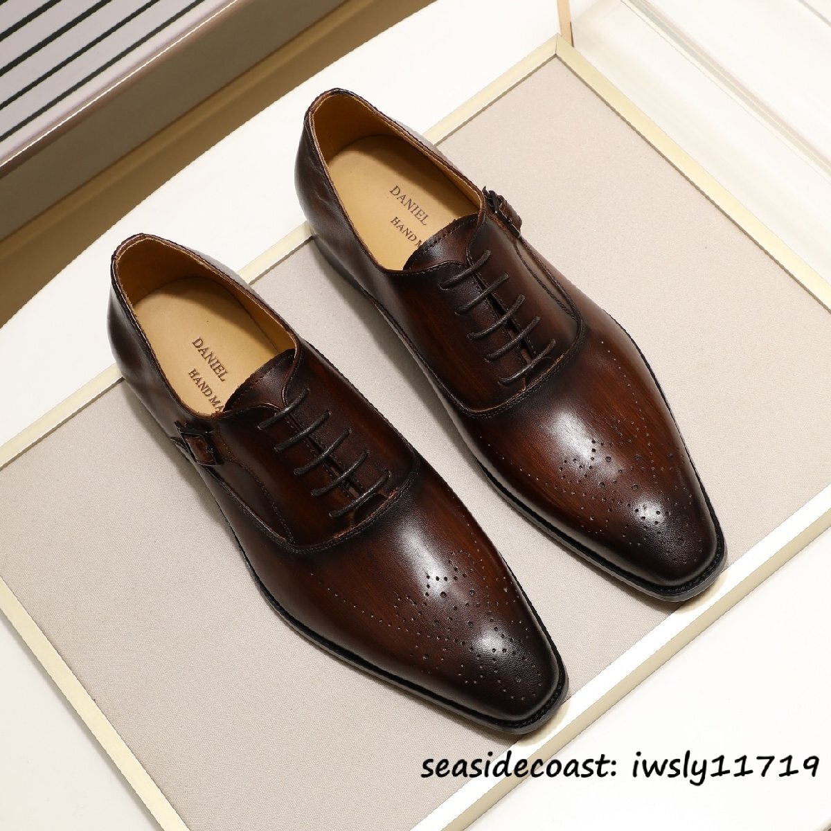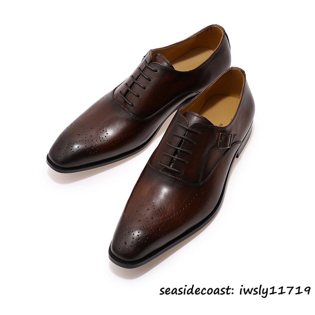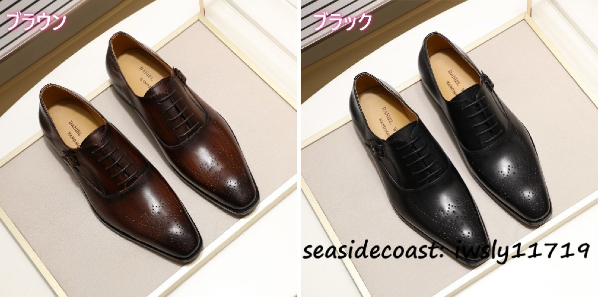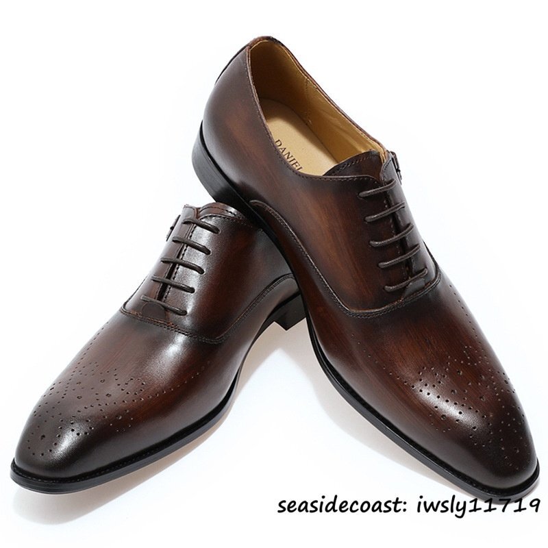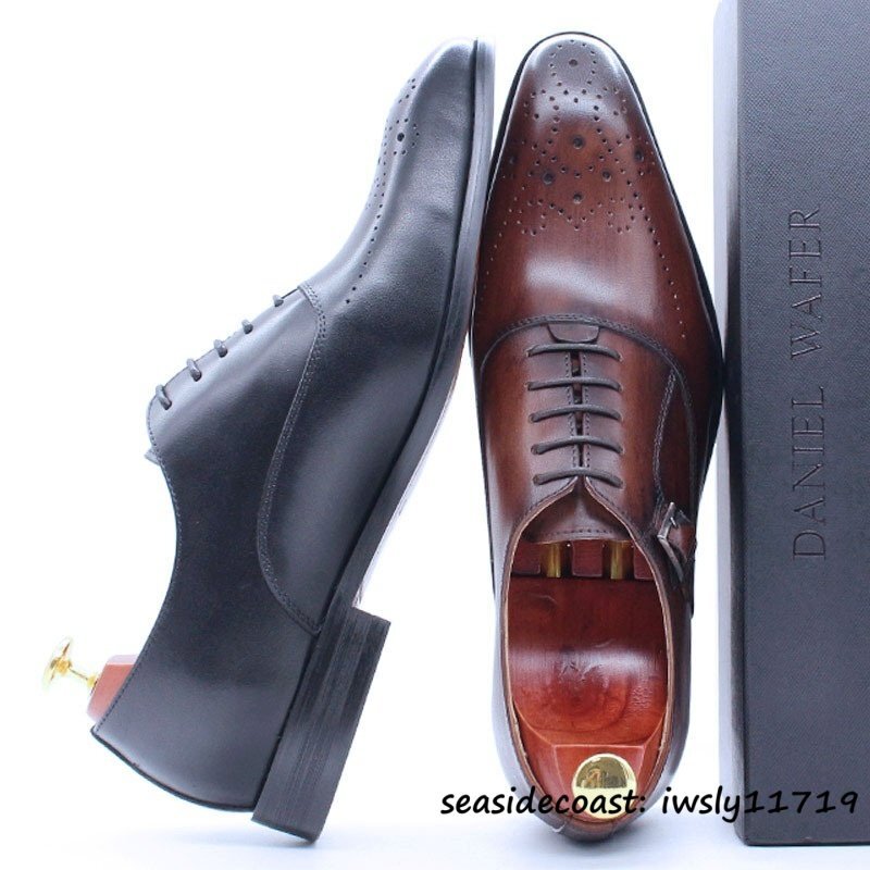 定価9万■メンズ ビジネスシューズ 最上級 本革 レザーシューズ 職人手作り 彫り イギリス風 紳士靴 革靴 牛革 フォーマル ブラウン 24.5cm