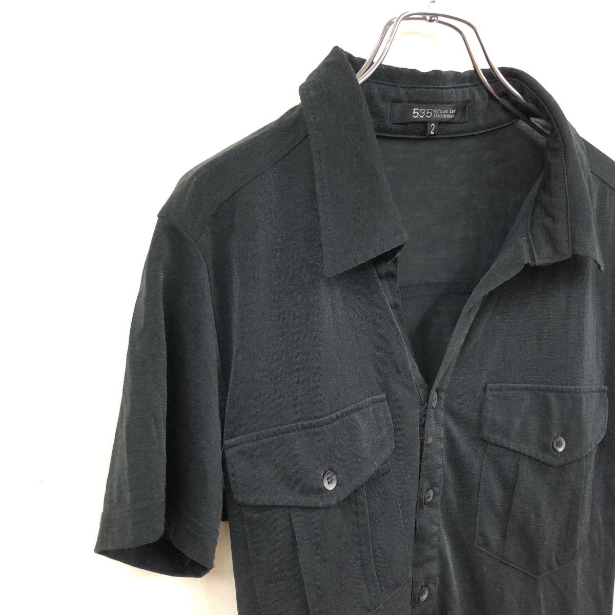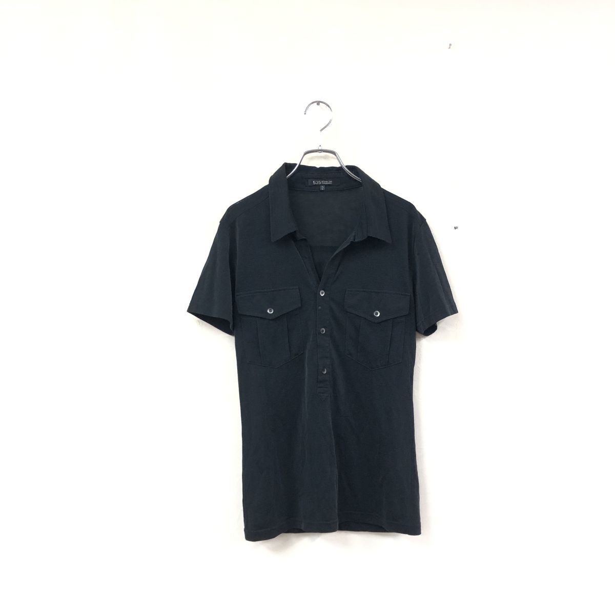 2K2119-U◆5351 poui les hommes プールオム ナイロン混半袖スキッパーポロシャツ 薄手 お兄系 カジュアル◆size2 黒 ブラック