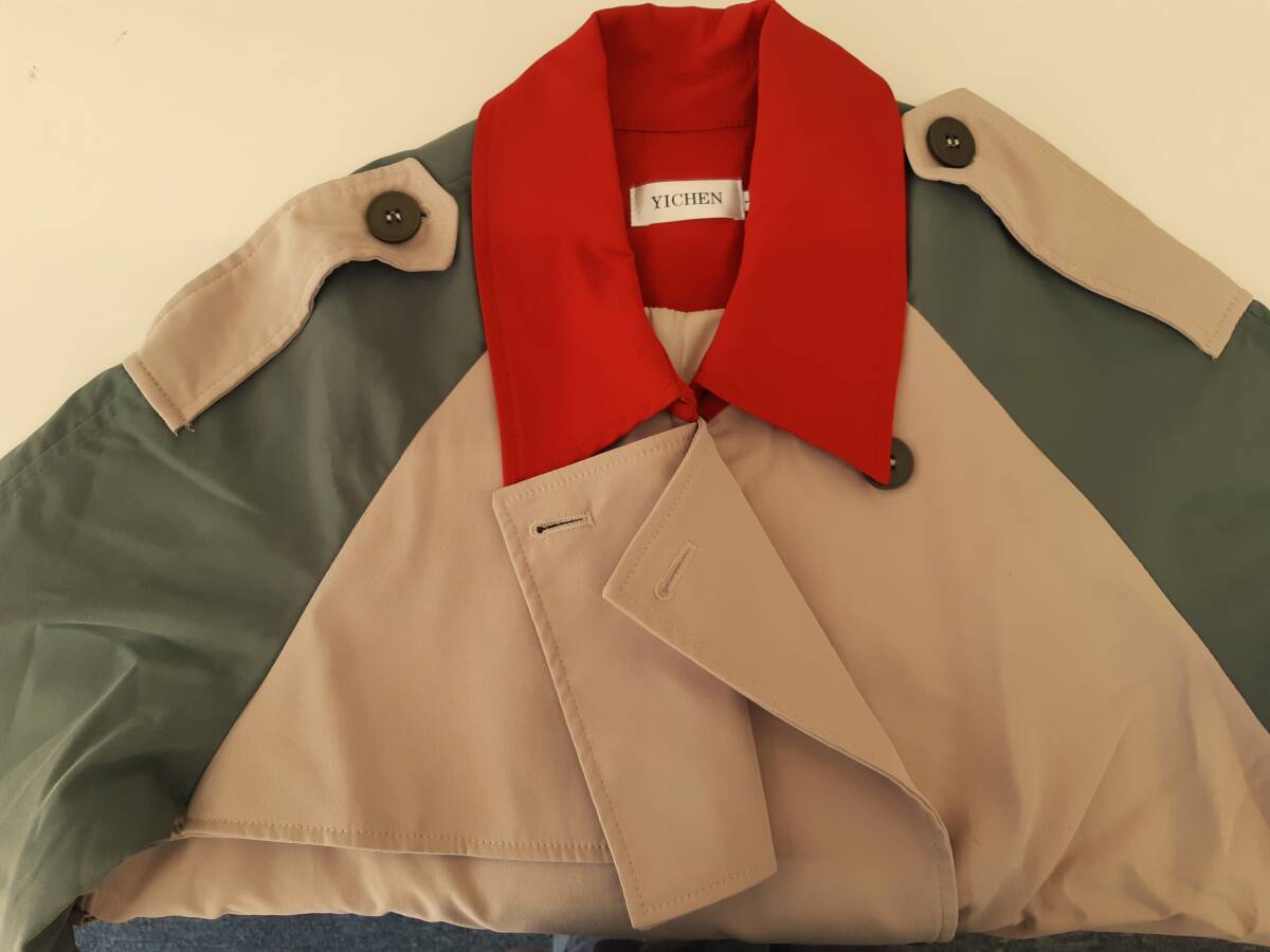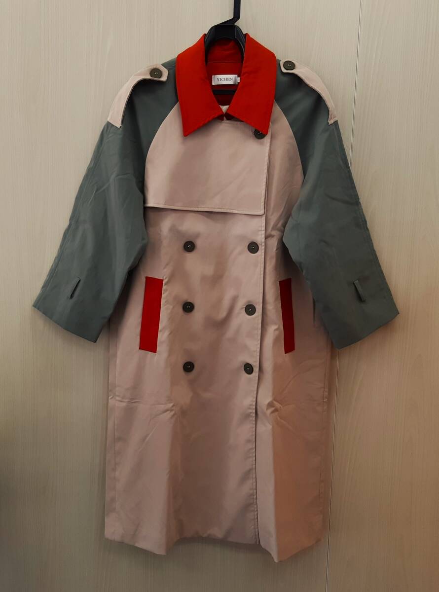 【菊水-497】トリコロール ステンカラー コート/韓国ファッション/ ベージュ系/Lサイス/レディース(SK) |