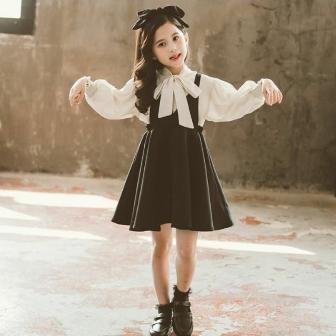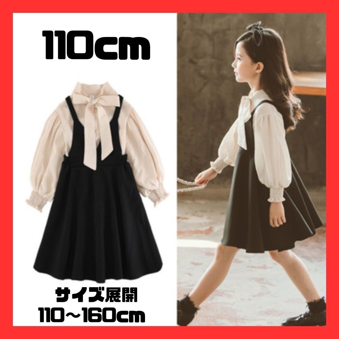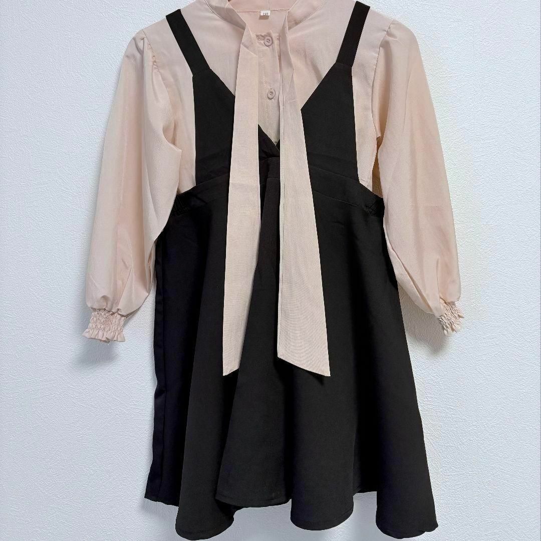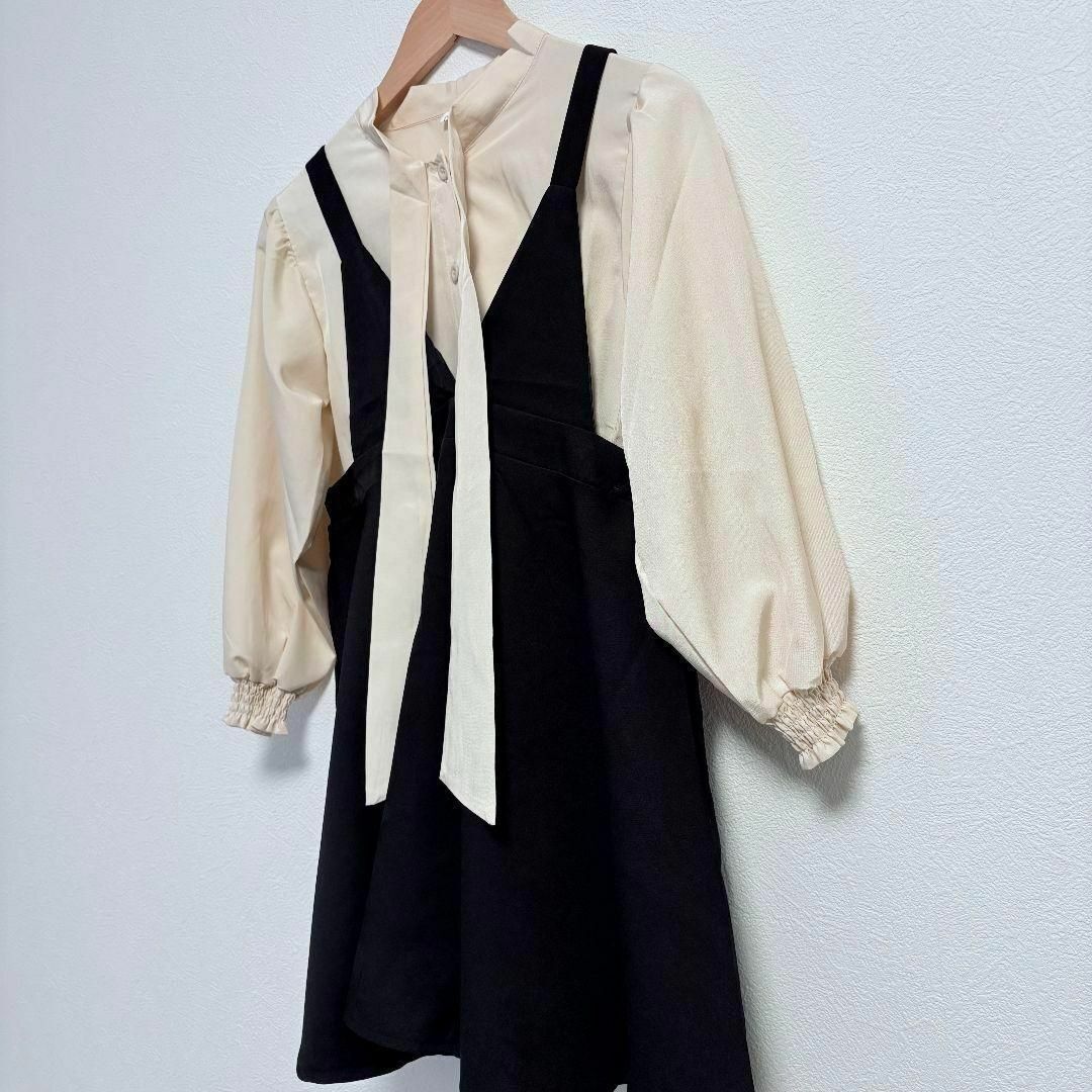 ベージュのブラウスと黒のワンピースは上品コーデの鉄板◎