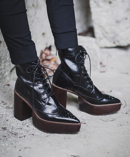 キーワード:ブーツ レディース ショート ハイヒール 厚底 紐 秋 冬