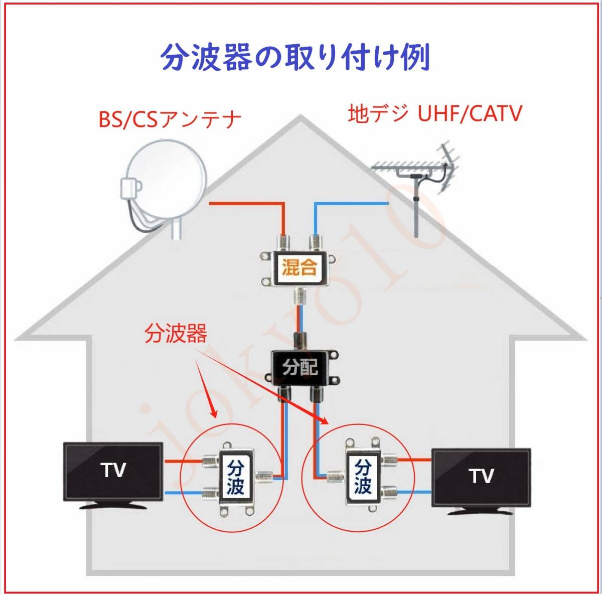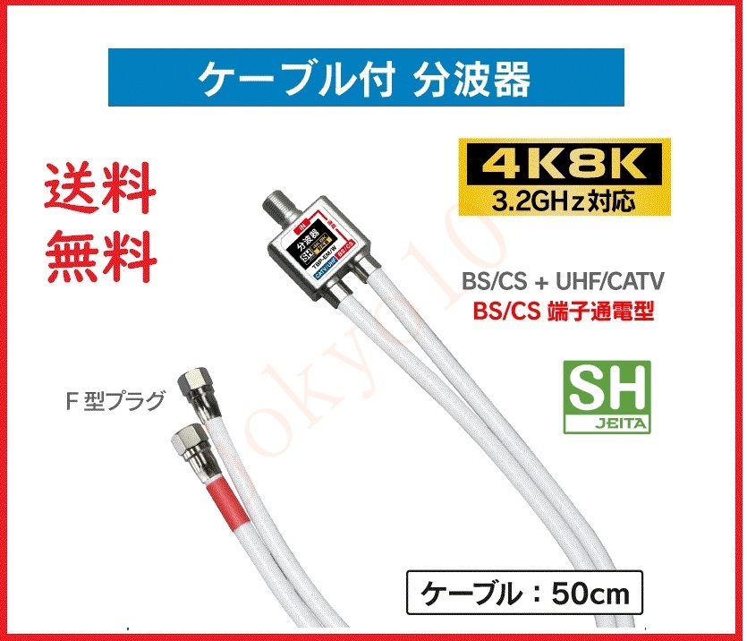 送料無料 4K8K対応 地デジ・BS・CS分波器 CATV/UHF(地上波デジタル放送)と衛星放送(BS/CS)に分波する 50cm 4K8Kケーブル付分波器