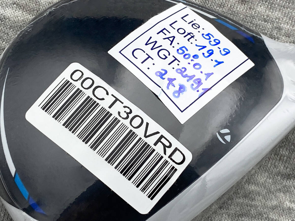 まだシュリンク(ヘッドを包んでいる透明のラップ)に包まれていて、テーラーメイド社の正規のスペックシートが貼り付けられている新品未使用品です。