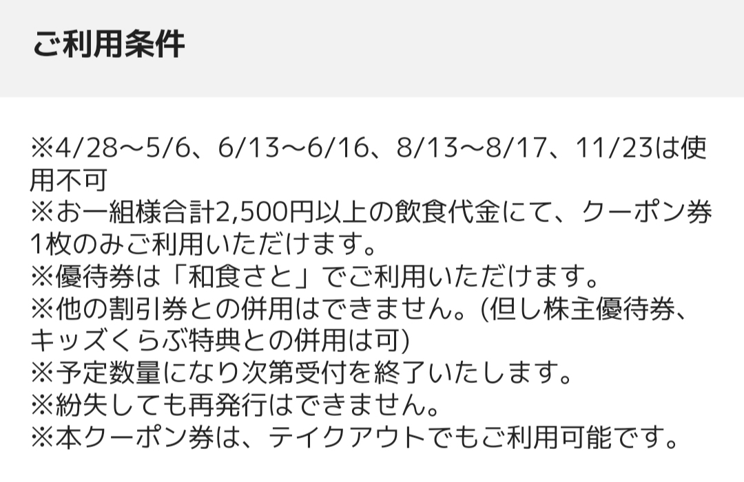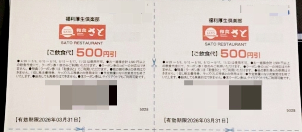 和食さと 特別優待券 飲食代500円引2枚