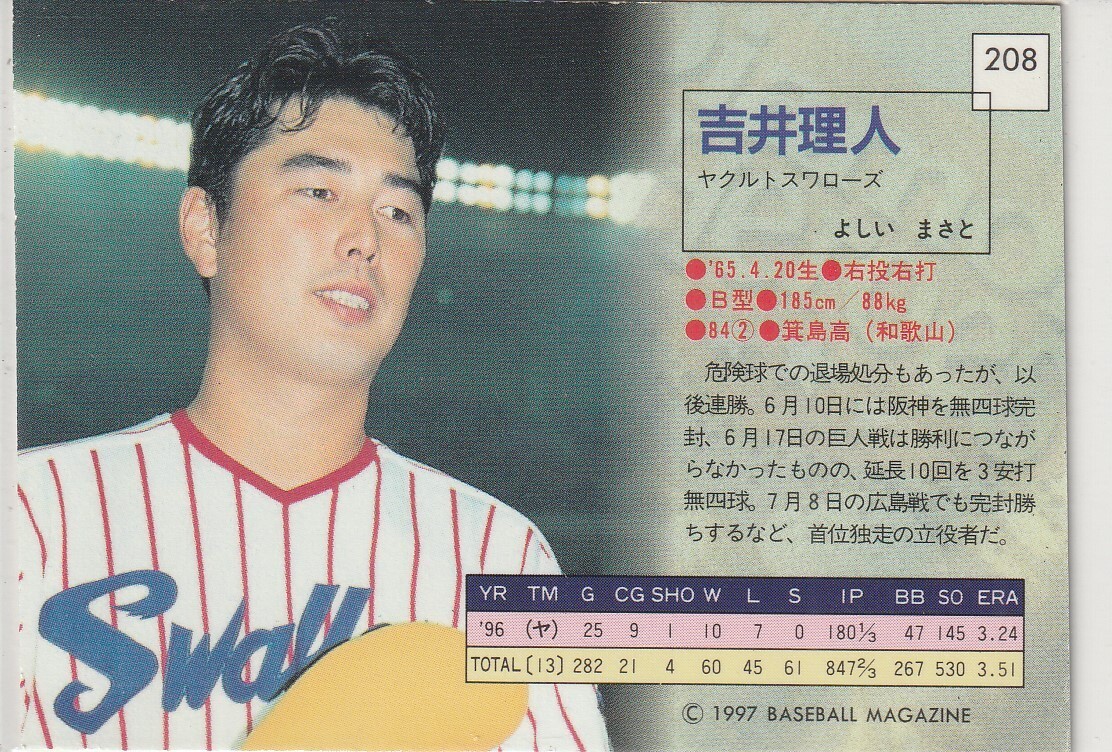 ●1997BBM/DH【吉井 理人】 BASEBALL CARD No.208:ヤクルト