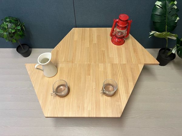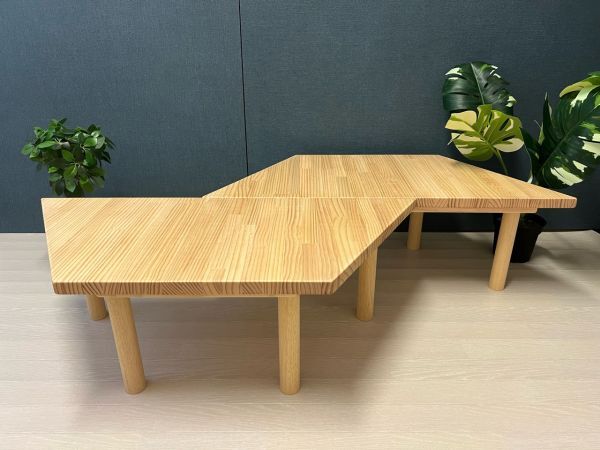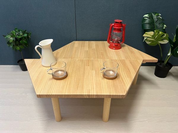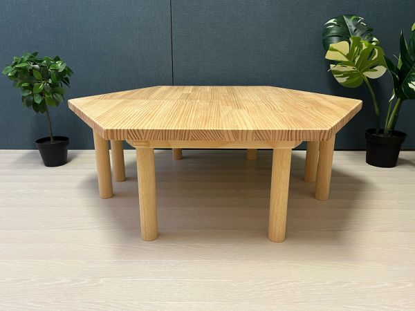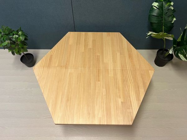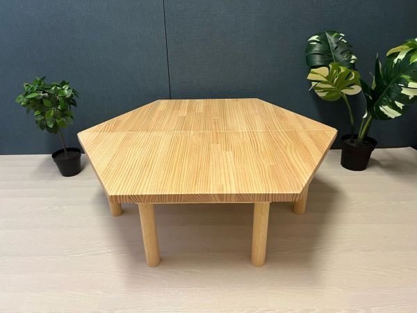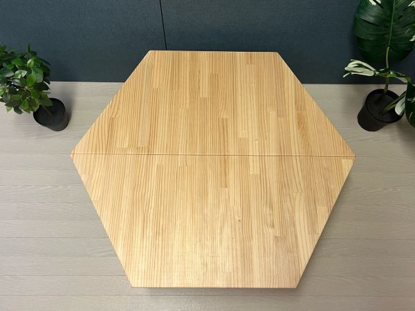 ◎6角形の天板を2分割し、それぞれ独立して使える様に脚を付けました。