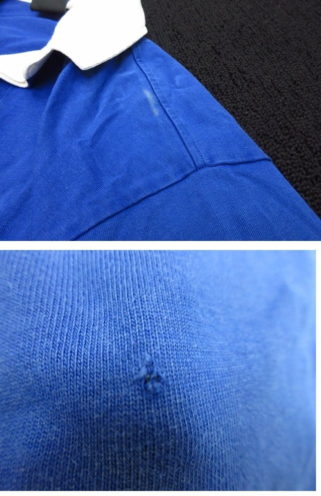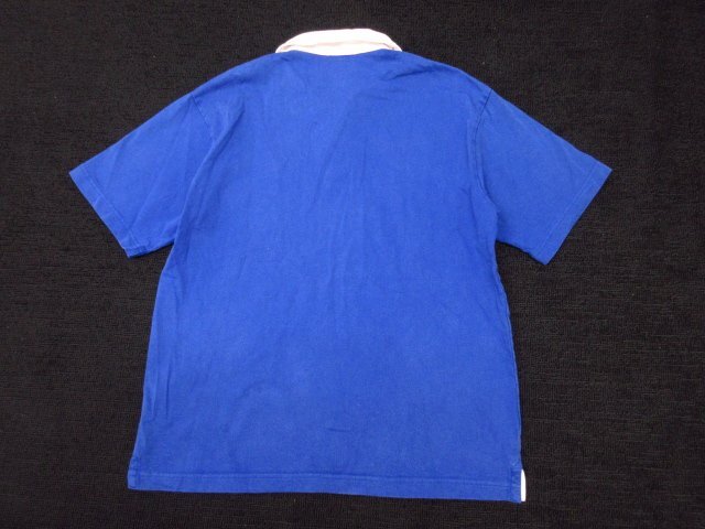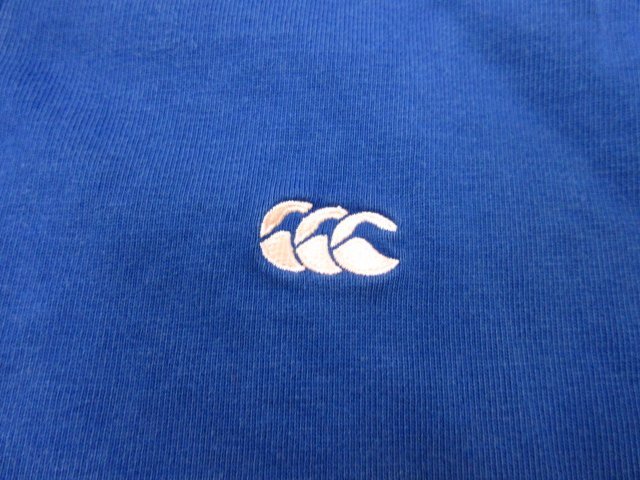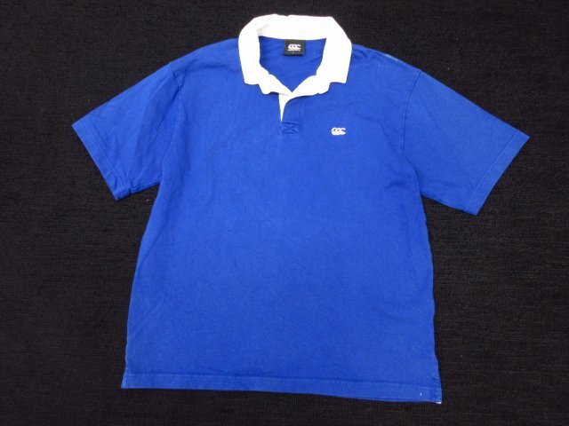 m2633 洗濯済 canterbury カンタベリー ラガーシャツ 半袖 ブルー×白襟 L 綿100% 胸の刺しゅうは薄ピンク色 身長170-180