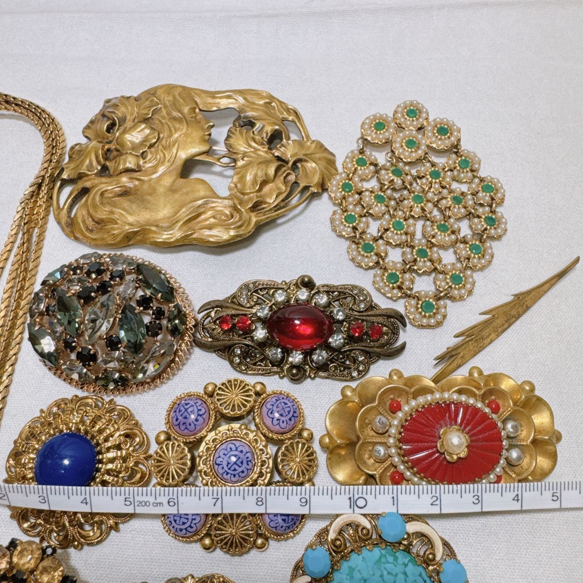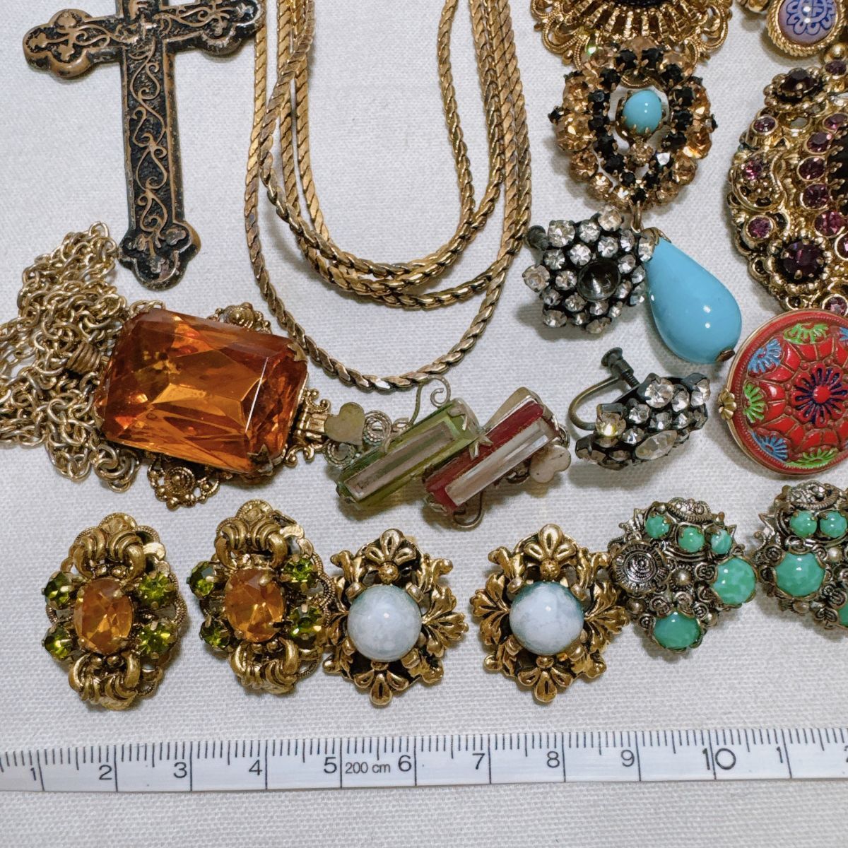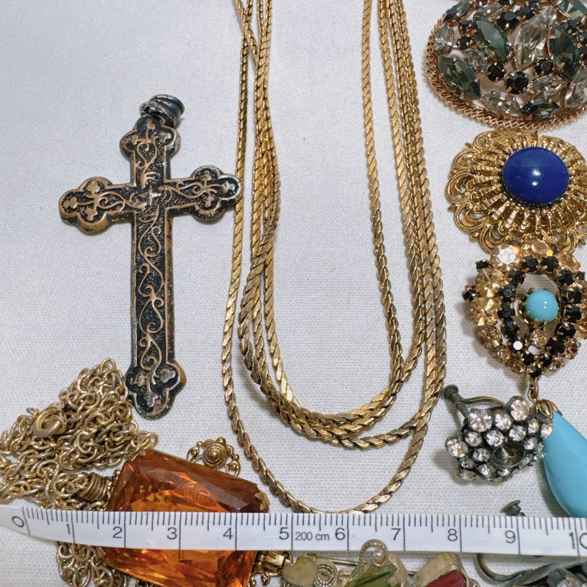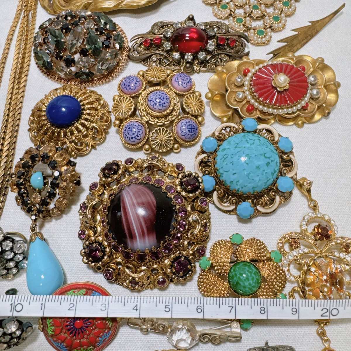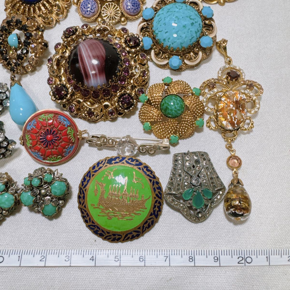 DY ヴィンテージ ブローチ ネックレス イヤリング 35点 まとめ 約450g アクセサリー ゴールド マルチ カラーストーン ラインストーン 等