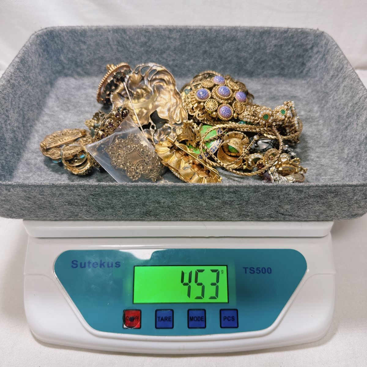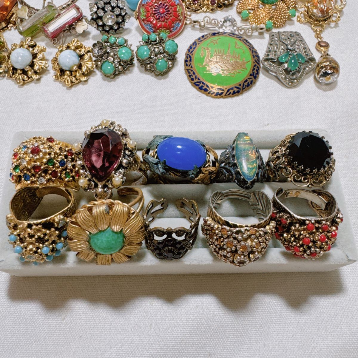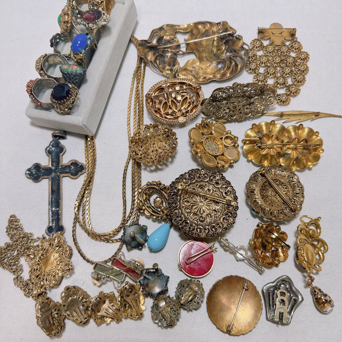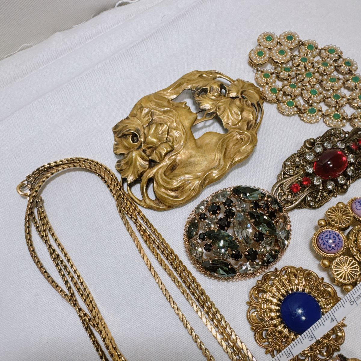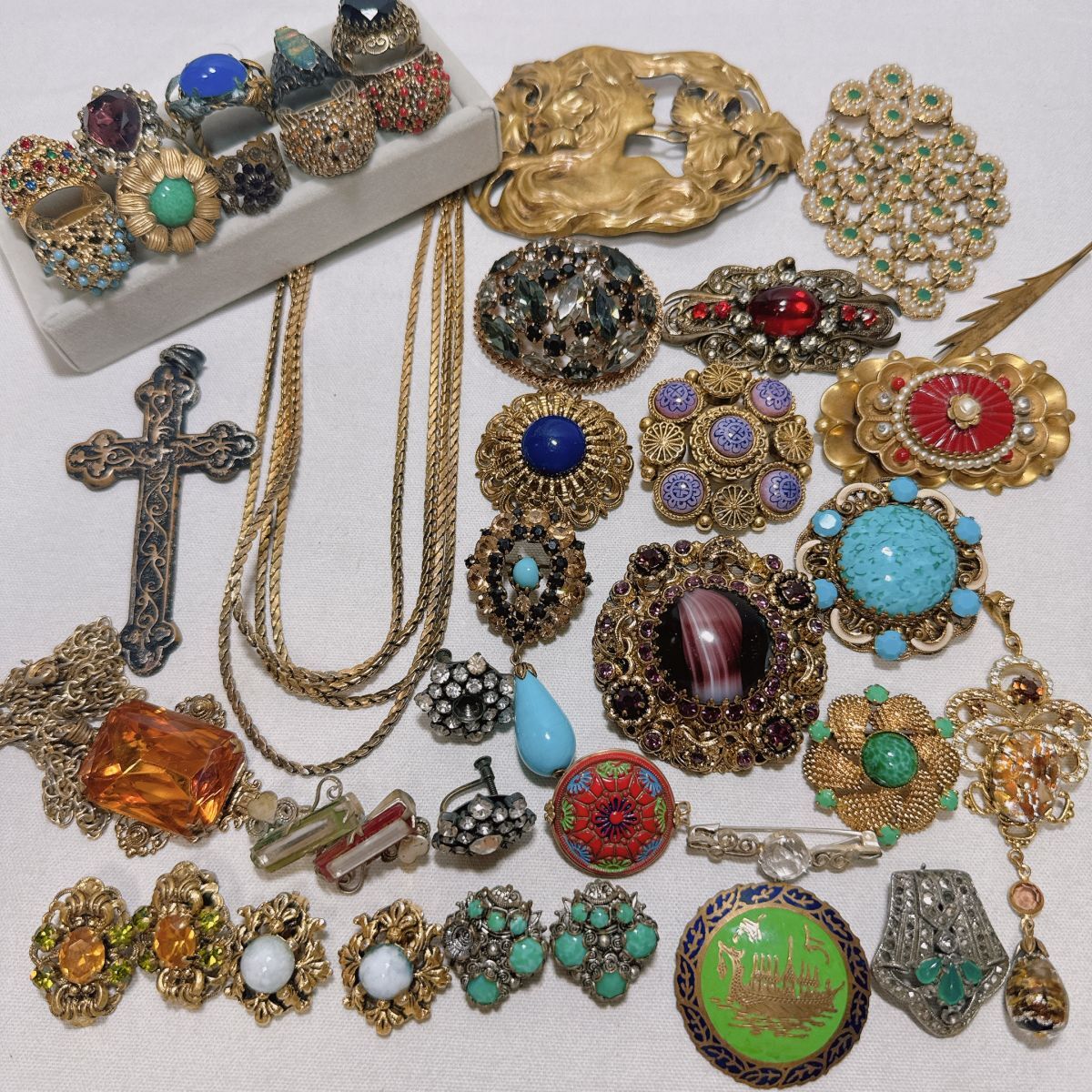 DY ヴィンテージ ブローチ ネックレス イヤリング 35点 まとめ 約450g アクセサリー ゴールド マルチ カラーストーン ラインストーン 等