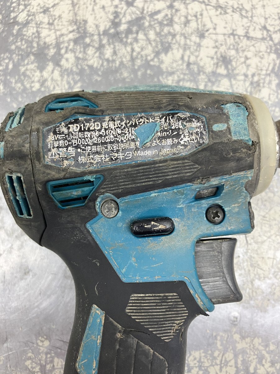 マキタ 18V 充電式インパクトドライバ TD172D 本体のみ のジャンク品の出品となります。 LEDライトとLEDランプは灯ります。しかし回転はしません。 また打撃切替は反応しません。 傷や汚れがあり使用感あります。 写真がすべてです。 神経質な方はご入札をお控えください。 ●当店出品商品におきまして、店舗での併売を行っているお品物がございます。 ご落札のタイミングによってはお品物のご用意が出来ない場合がございます。 店舗での販売が優先となりますので、あらかじめご了承ください。 ●簡易的な清掃はしておりますが、取り切れない汚れ・社名跡がある場合がございます。 ●リユース品ですので細かな傷・打痕・サビ・塗装剥がれ・変色等があります。 ●神経質な方・完璧なものをお求めの方は入札をお控えください。 ●弊社ではお値引き価格交渉等はご対応を行っておりません。 ●即決価格が設定されてい商品はオークション形式のみでの販売となります。 ●外国籍の方と以前のお取り引きでトラブルが発生した為、日本語が細かく理解出来ない方は入札をご遠慮下さい。 ●Please refrain from bidding if you are unable to understand Japanese in detail, as we had trouble with a previous transaction with a foreign national. | ||