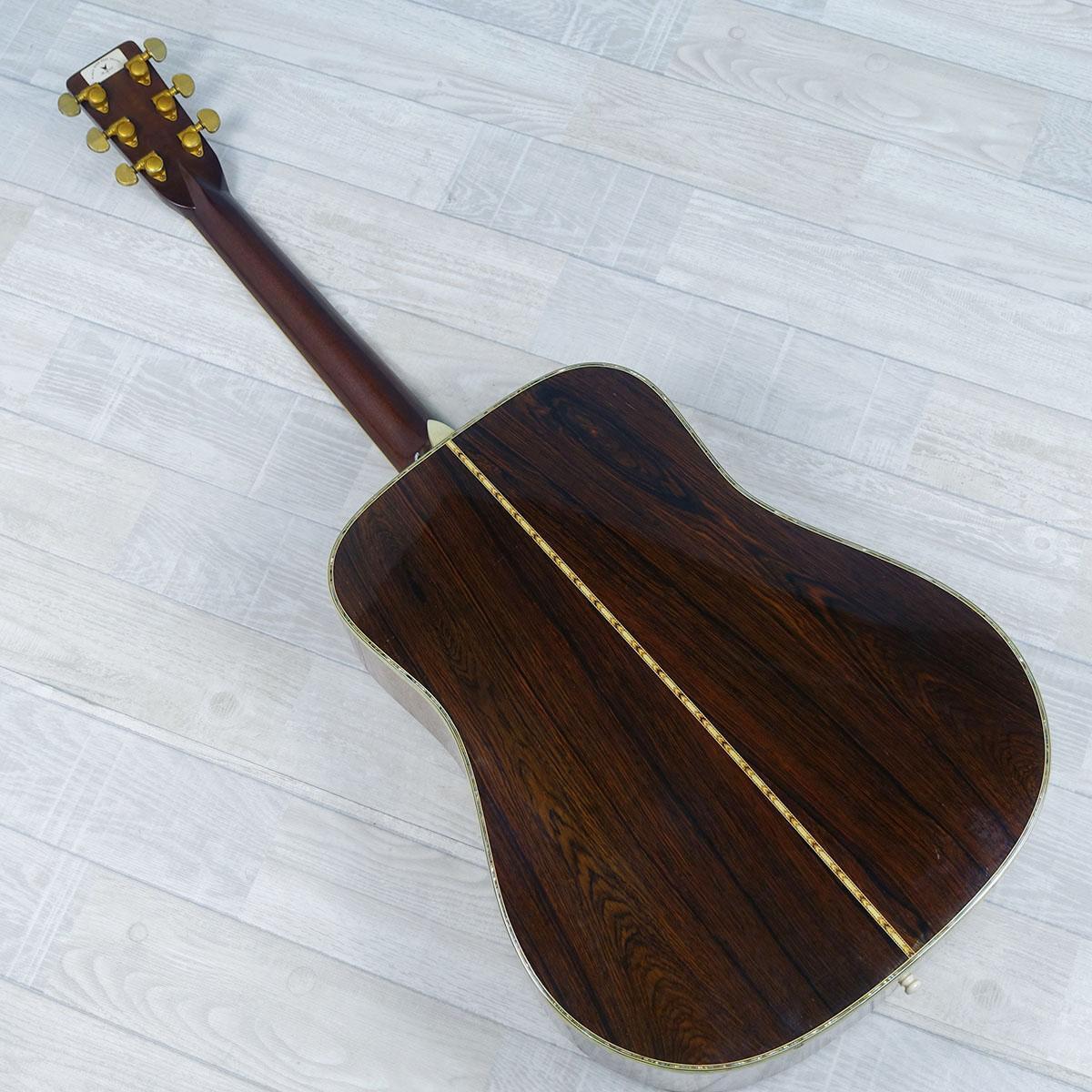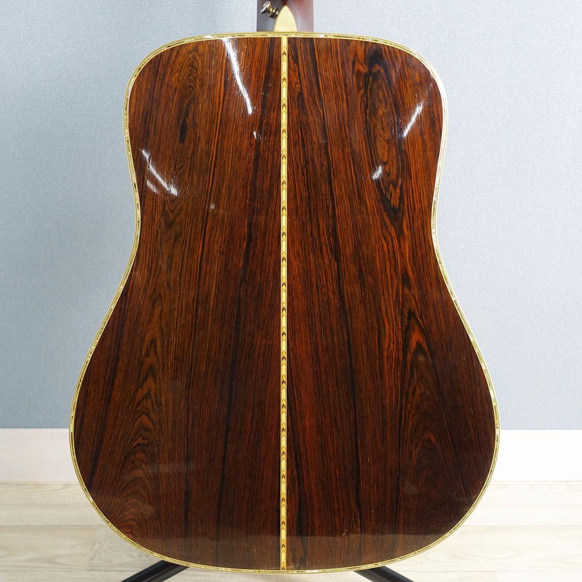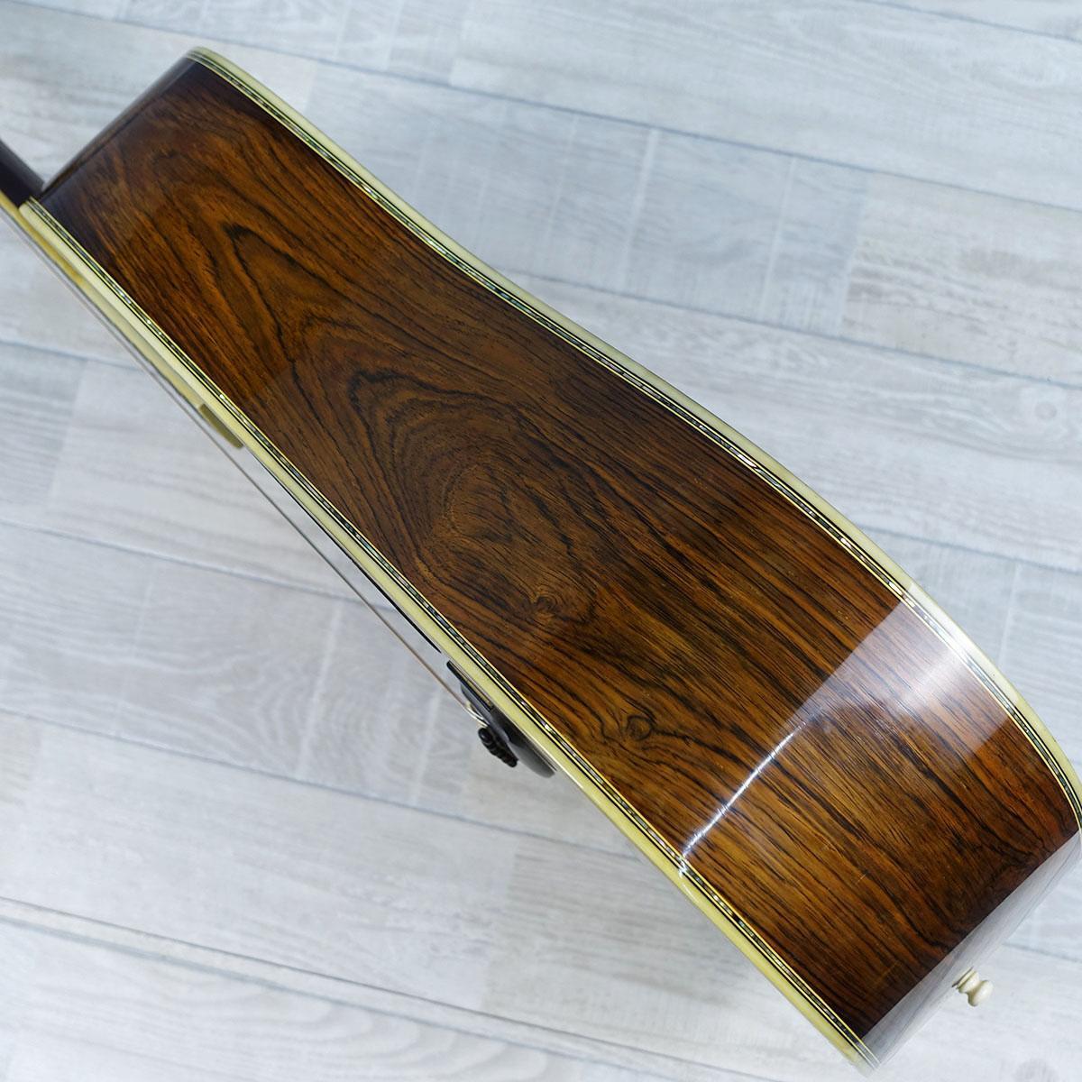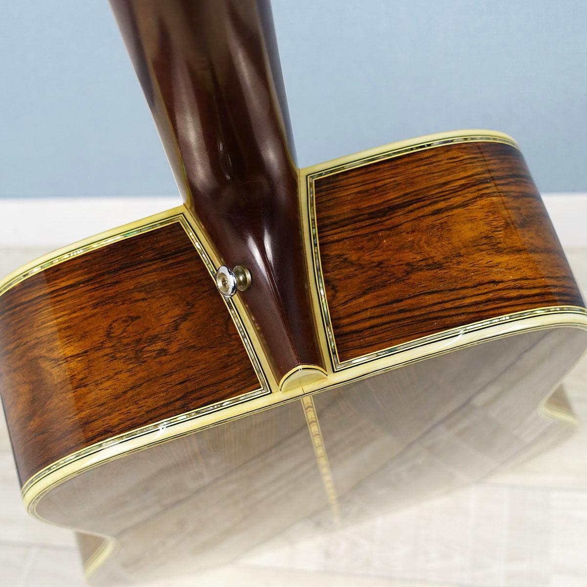 スプルース単板トップにサイドとバック材にハカランダをを使用したドレッドノートボディにエボニー指板のマホガニーネックというウッドマテリアル。