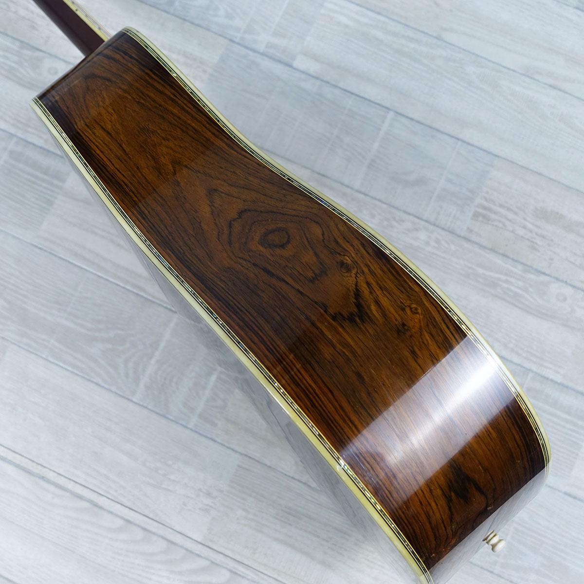 サウンドに関しては、ハカランダサイド&バックということもありますが、弾かれてない期間が長かったのかやや硬い印象。チェック時10分強強めのピッキングで"起こす"イメージで弾いているとやや明るく柔らかくなった様に感じますので、ヴィンテージとなりますがまだまだ余力十分といった一本となります。