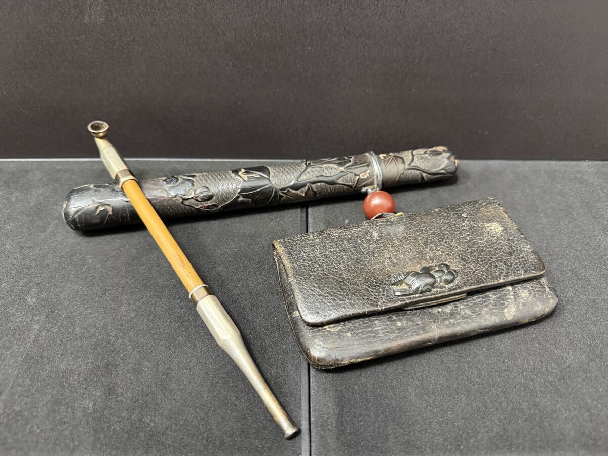希少! キセル 作者物 純銀 金純刻印あり 喫煙具 煙草入れ 煙管 時代物 アンティーク コレクション 銀 金 0921G①