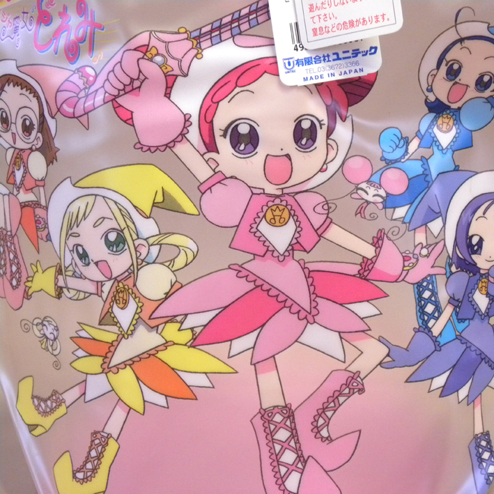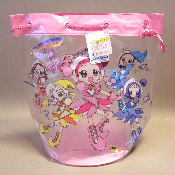 2001年当時物「も~っと! おジャ魔女どれみ ビニールバッグ」未使用新品です。縦約30cm、底面の直径約20cmです。