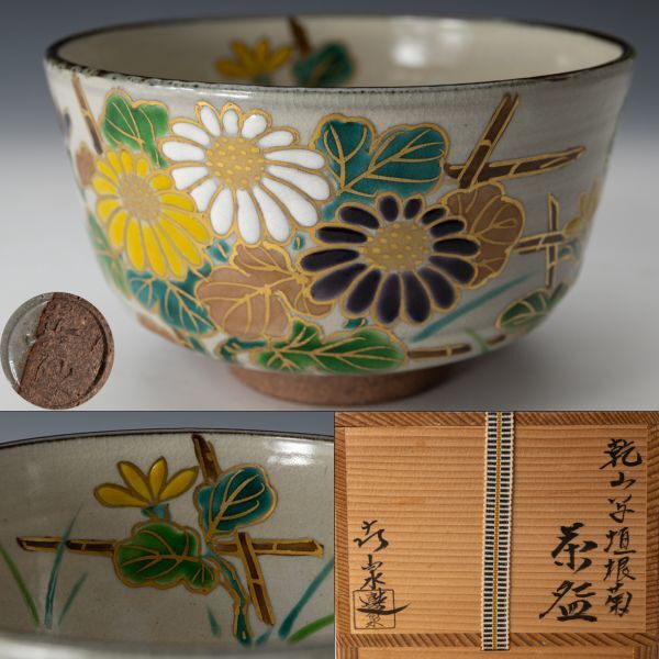 【茶道具】桃山窯 橋本喜泉 乾山写 垣根菊絵茶碗 共箱 共布 栞 保証品
