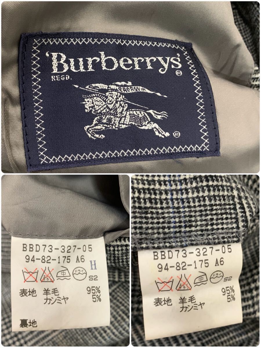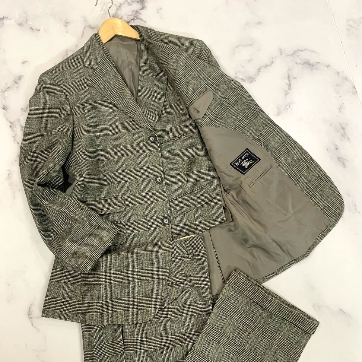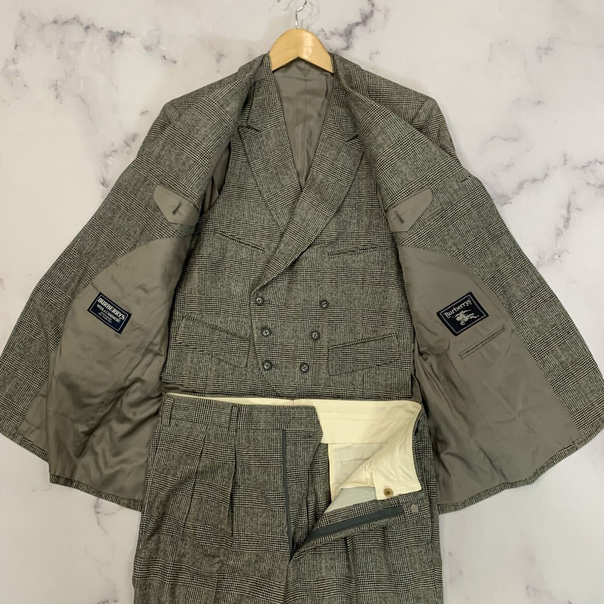 DD ▼ 洗練されたデザイン!! 'カシミヤ混' Burberrys バーバリー グレンチェック スーツ セットアップ 上下 3点セット A6 メンズ 紳士服