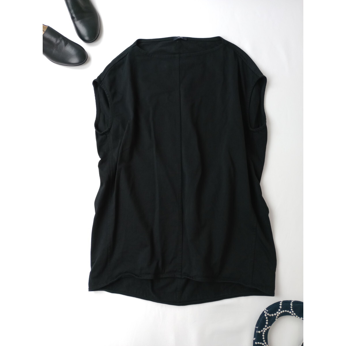 イレーヴ YLEVE オーガニック コットン 綿 100% ハイカウントジャージーノースリーブ プルオーバー トップス 黒 ブラック