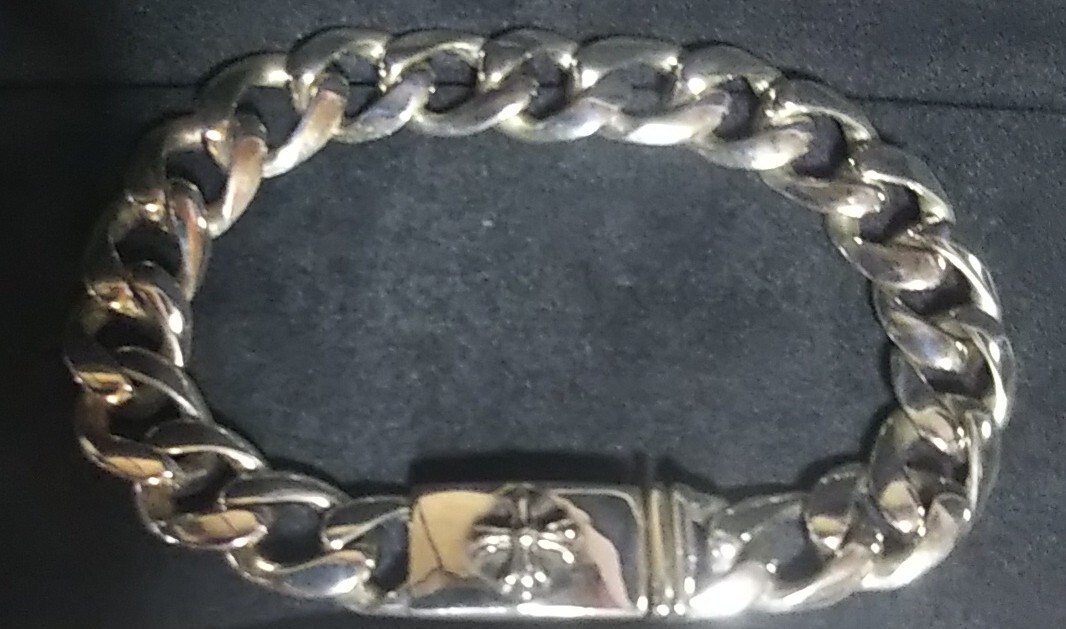 光沢のあるシルバーチェーンブレスレット