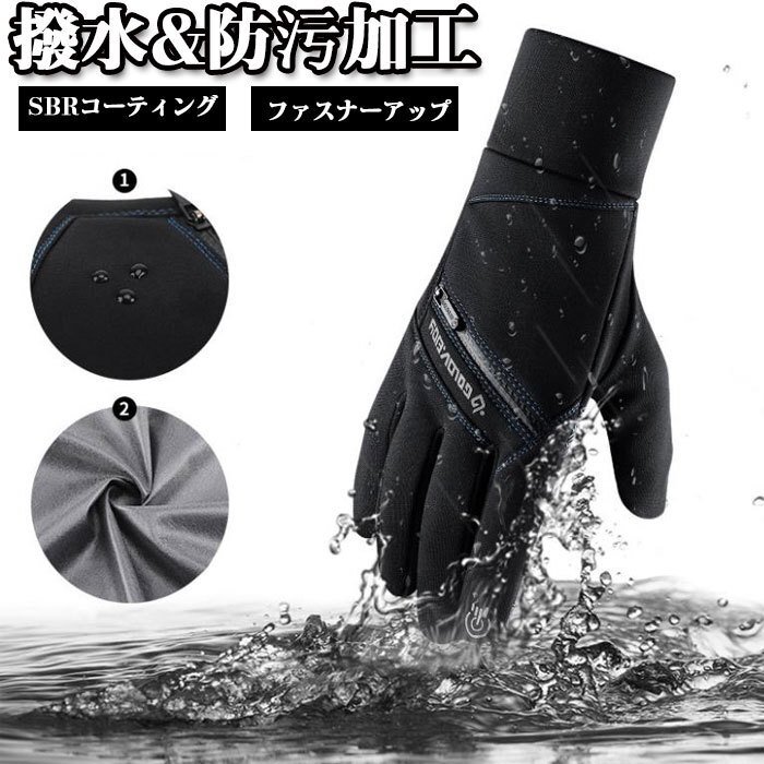 スマホ手袋 防寒防風 撥水加工 保温 手触りよい 柔軟 厳選保温 タッチパネル 耐久性 登山 ハイキング 釣り スマホ対応 ☆ブルー