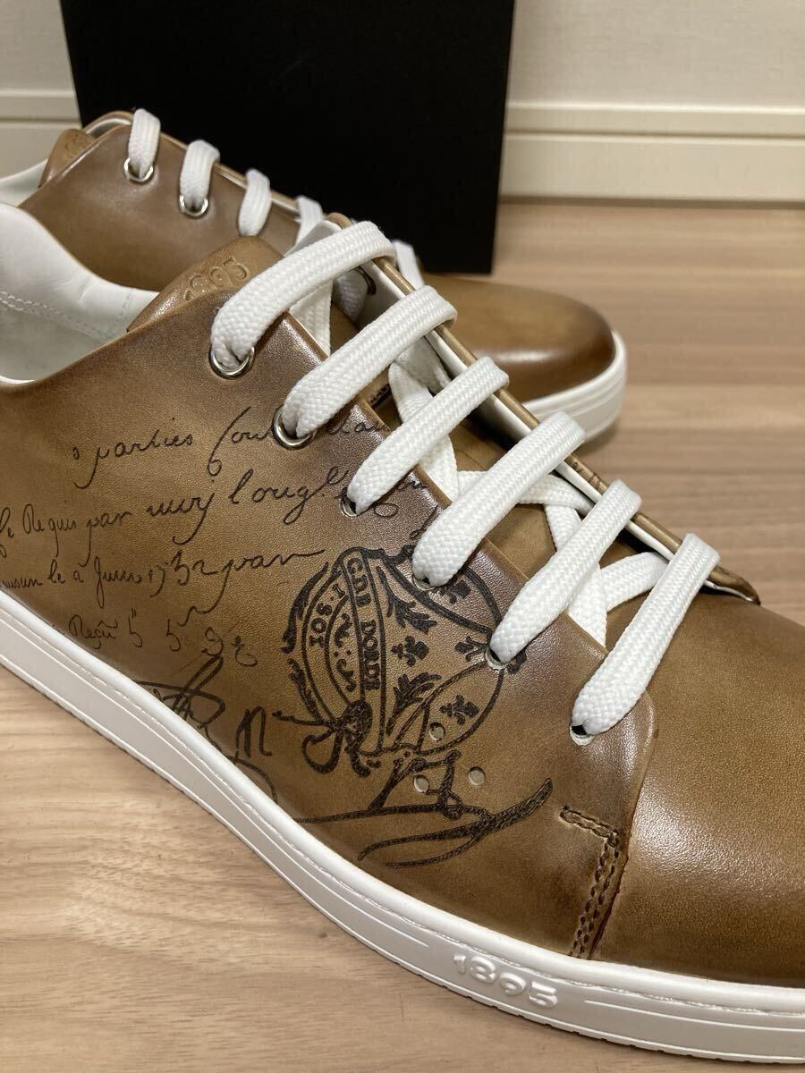 新品未使用のBERLUTIのスクリットプレイタイムレザースニーカーになります。サイズは8,5でBERLUTIの公式HPのサイズガイドでは27,0cmとなっておりますが、27,5cmの方でも着用可能になります。
