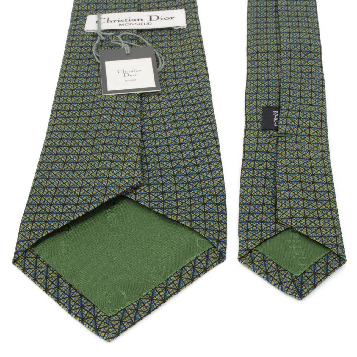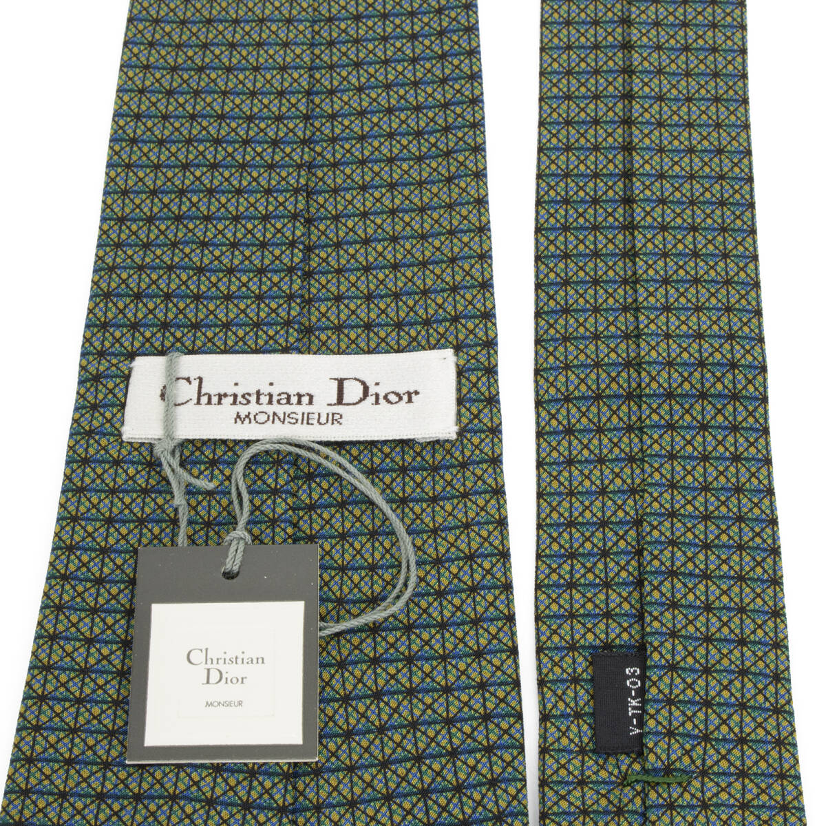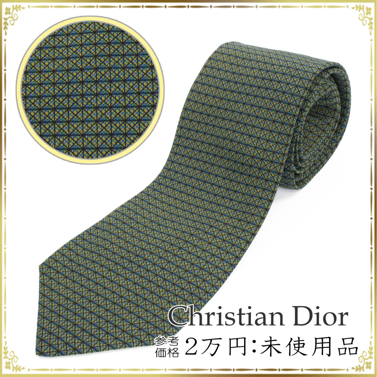 【全額返金保証・送料無料・未使用品】ディオールのネクタイ モンシュール 正規品 グリーン系 格子柄 総柄 希少 メンズ ビジネス 通勤