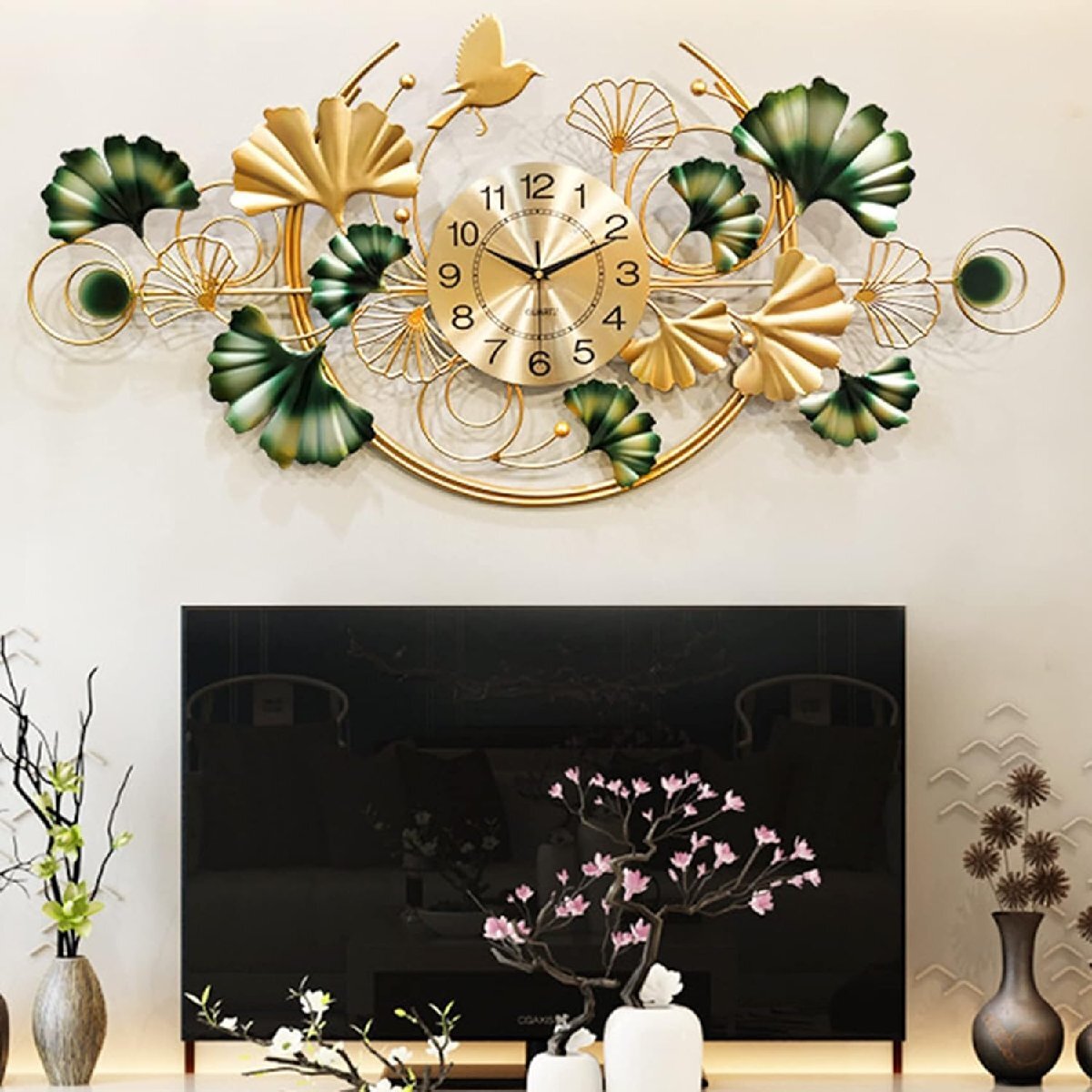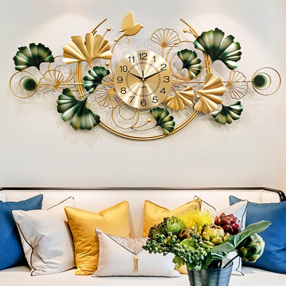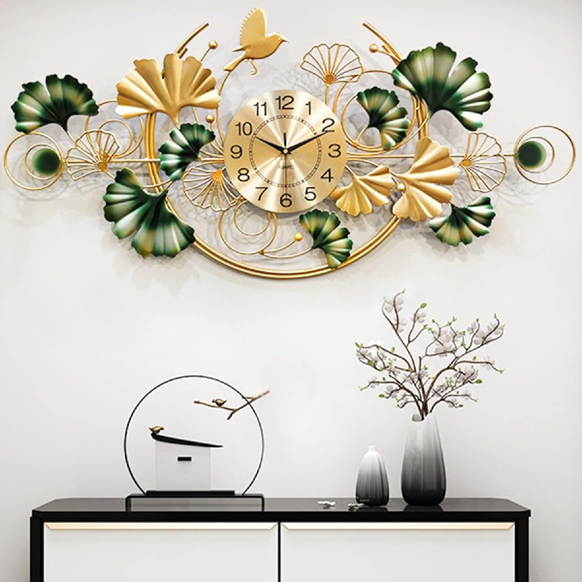 壁掛け時計 リビングルームスタディ イチョウの葉、壁掛け時計 メタルサイレント壁掛け時計装飾、モダンな3Dアートローマ数字時計