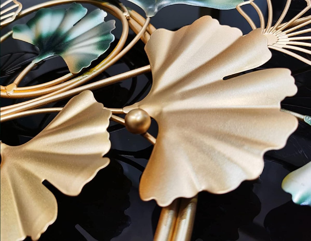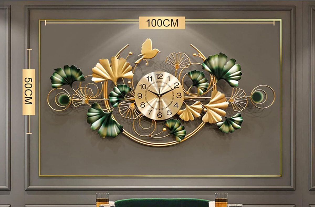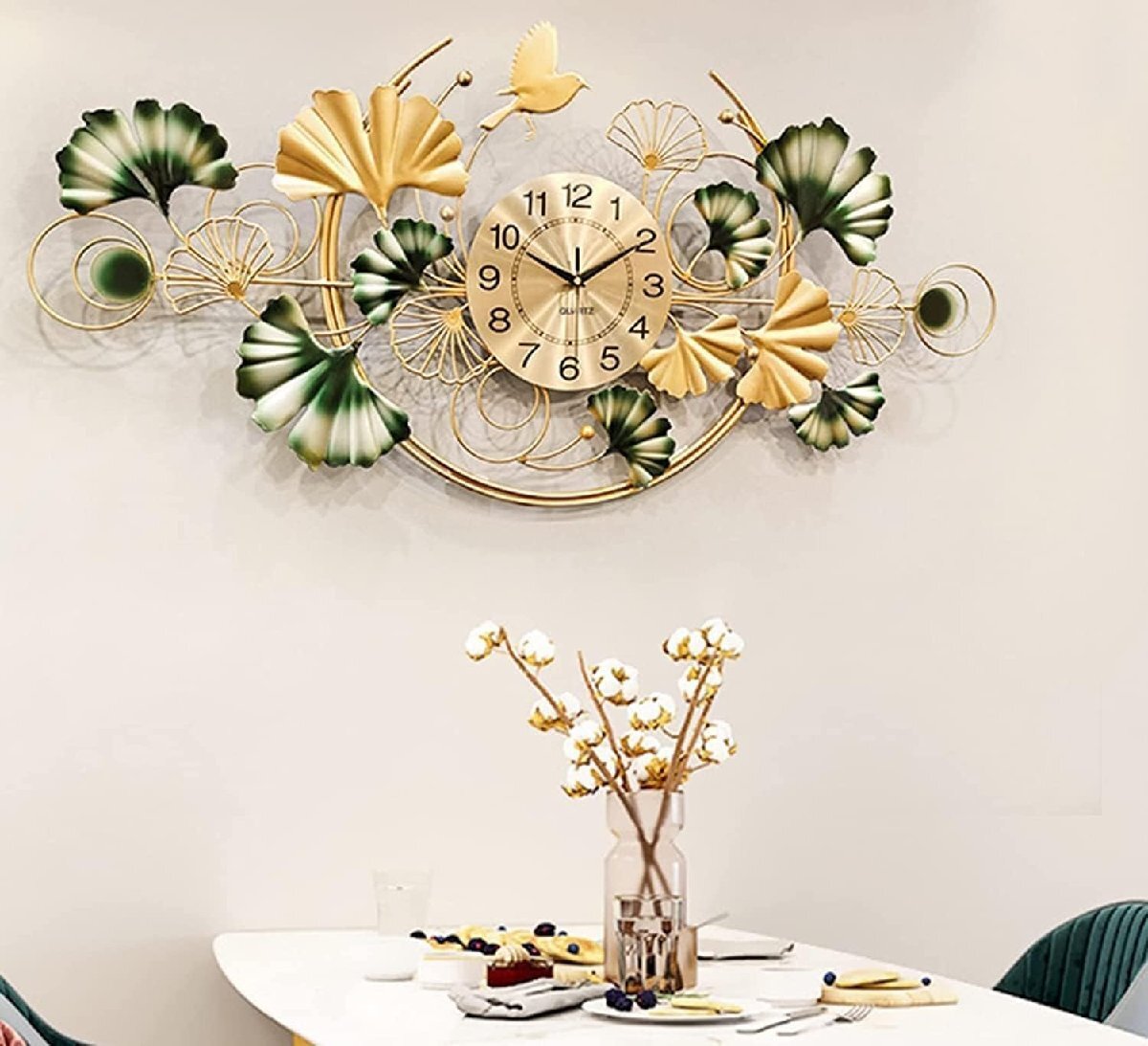 壁掛け時計 リビングルームスタディ イチョウの葉、壁掛け時計 メタルサイレント壁掛け時計装飾、モダンな3Dアートローマ数字時計