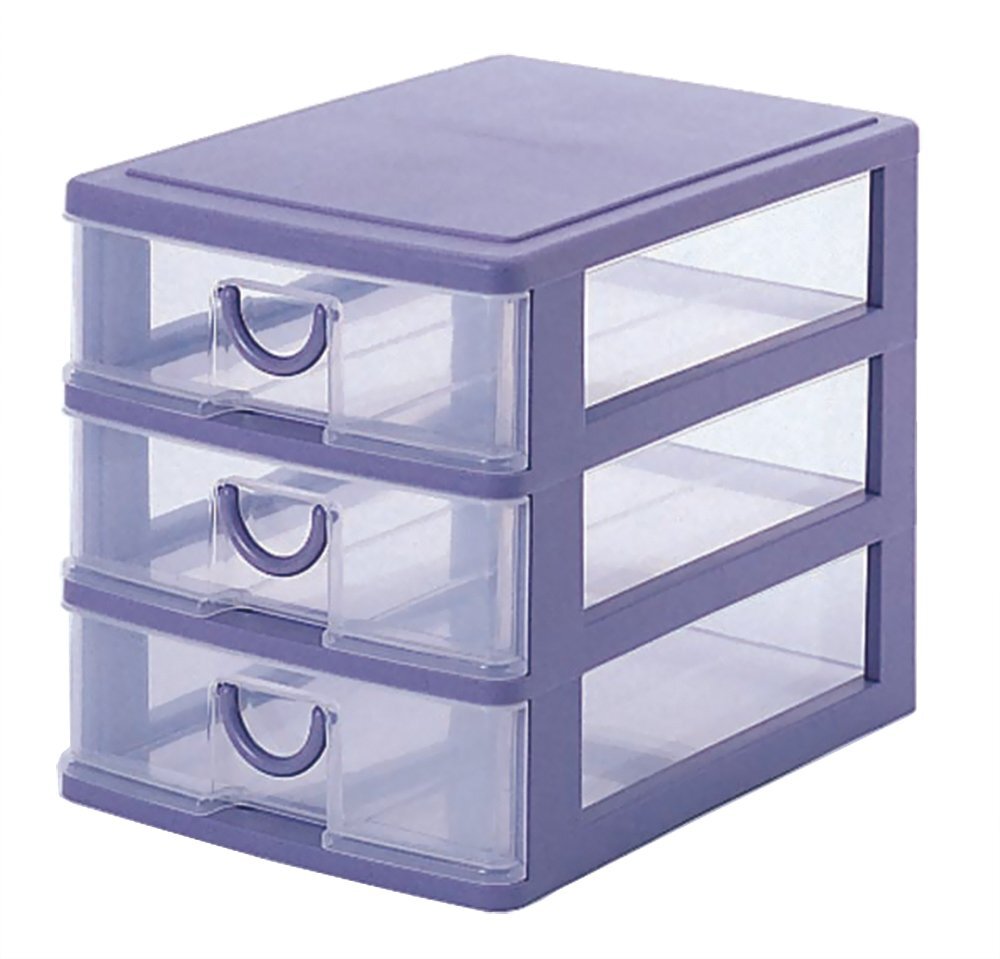 サンコープラスチック 小物収納3段 エルピス 幅25.2×奥35×高28cm ストーンブルー