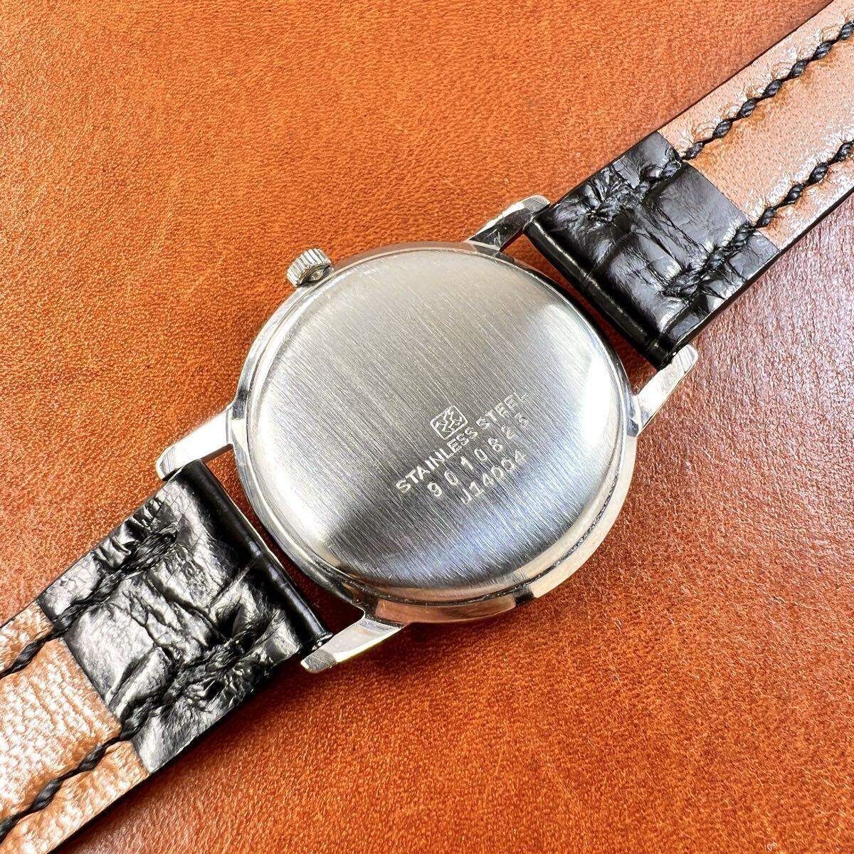 国産ヴィンテージ時計が好きで長年集めてきましたが、コレクション整理のため、自作のクロコダイル本革ベルトをつけて出品します。高価で中々手に入れにくいエキゾチックレザー本革の質の良さを感じていただければ幸いです。