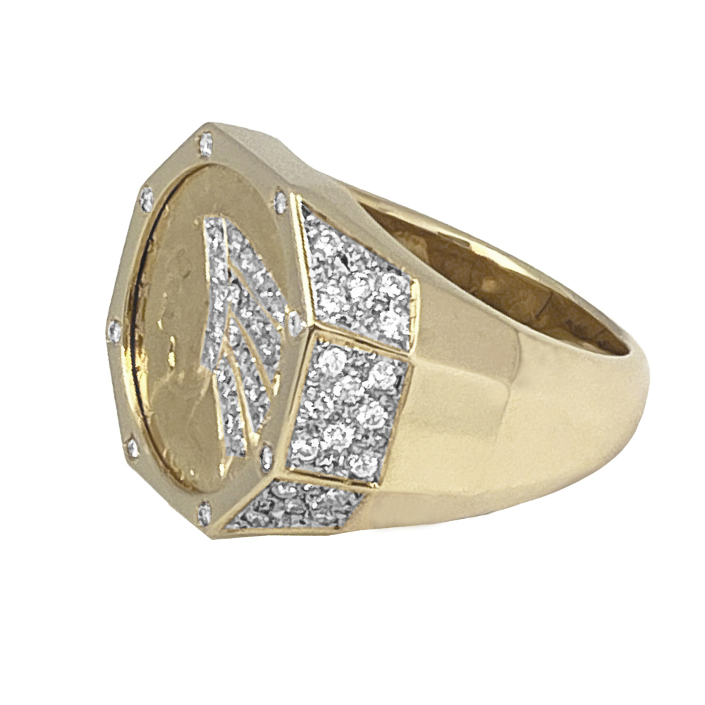 商品名 | K21.6/K18 インディアンヘッド コイン 2.5ドル 金貨 ダイヤ 0.67ct メンズ リング | ||