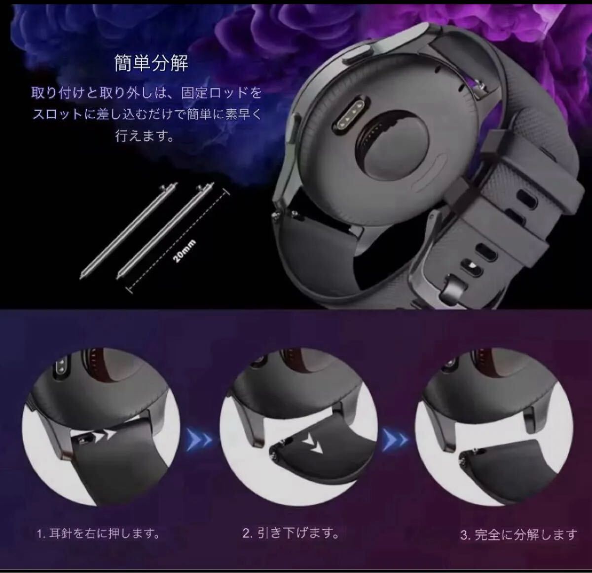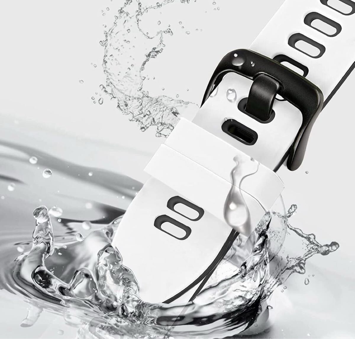 材質:22mmの2色シリコンバンド、高品質のエコシリコンゴムを使用して、ゴム特有の不快なにおいがなくて、柔らかくて快適で優れた質感と触感を持っていて、柔軟性と丈夫さを結合します。軽量素材はお客様の手首にストレスを与えません。柔軟性と自由性、防水性と制汗性、日常生活、もちろん、海のスポーツにも使用できます。