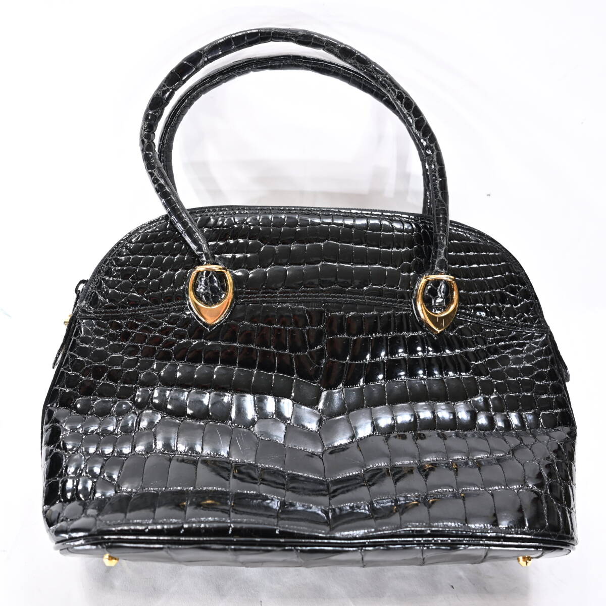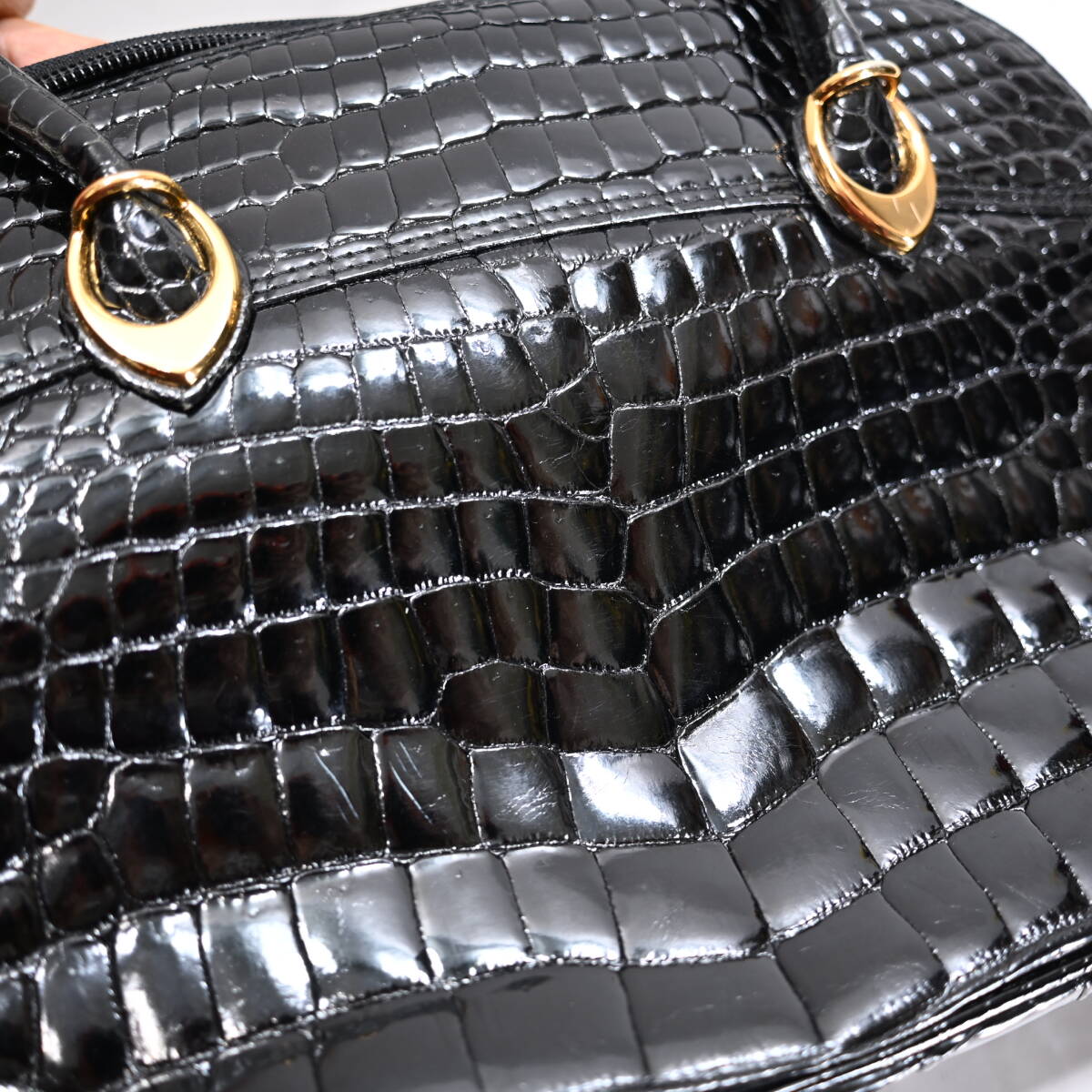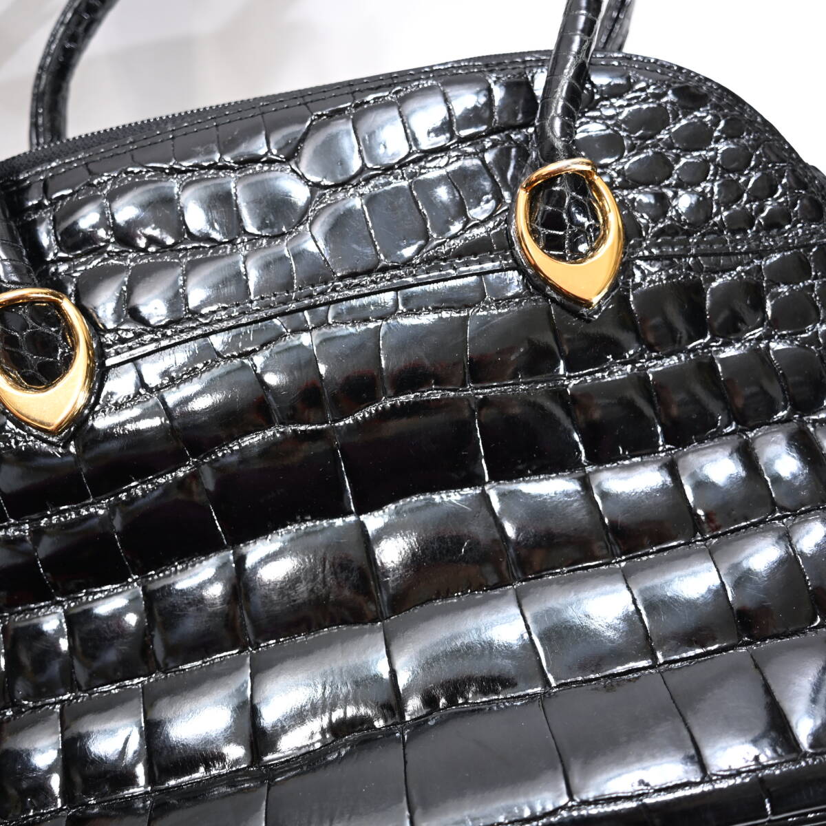 【TOKYO】日本製シャイニングクロコダイルレザーハンドバッグ黒リアルワニ革