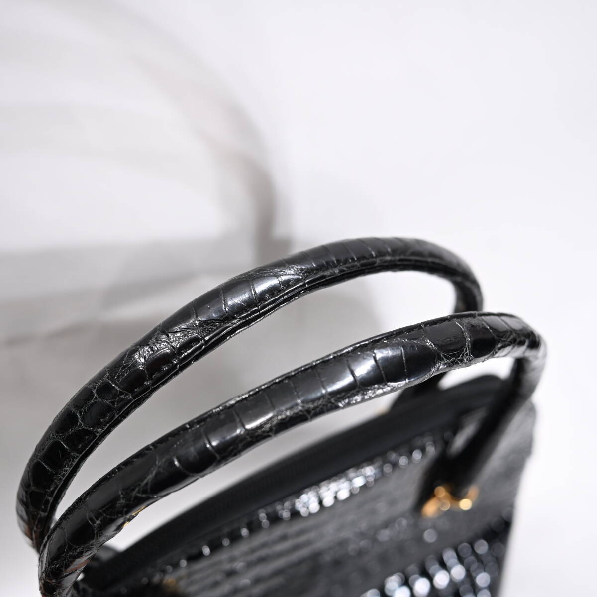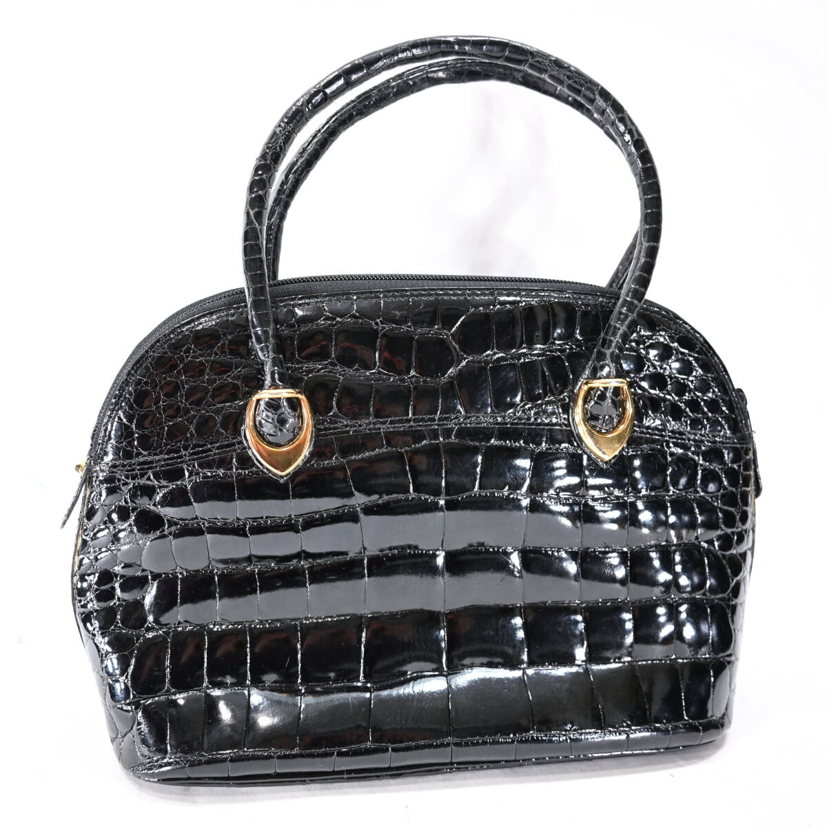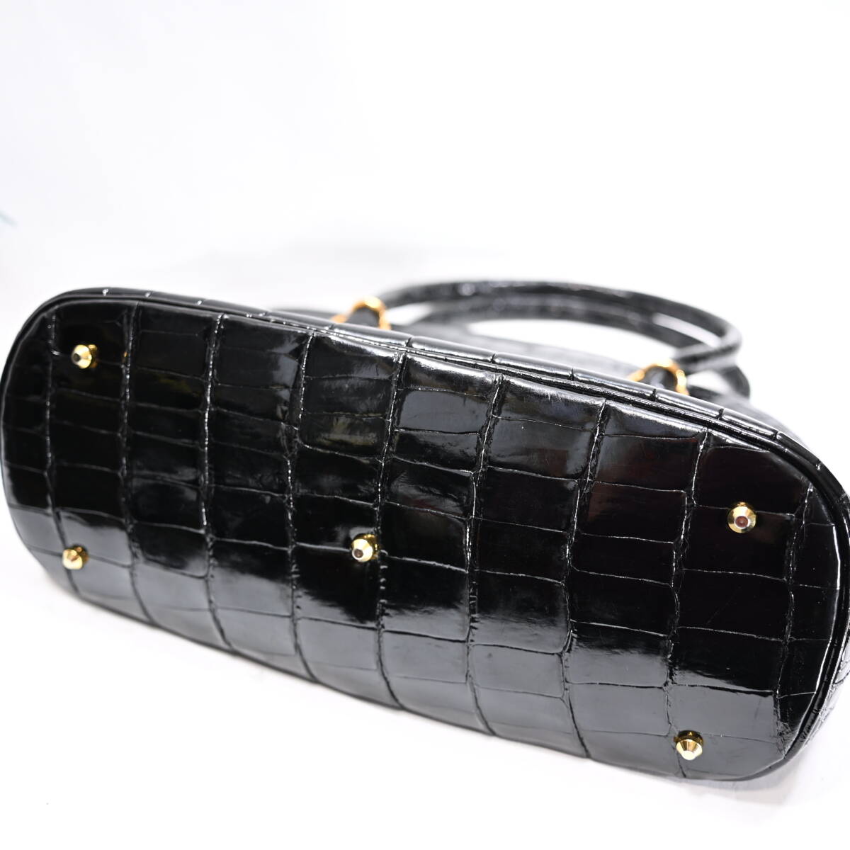 【TOKYO】日本製シャイニングクロコダイルレザーハンドバッグ黒リアルワニ革