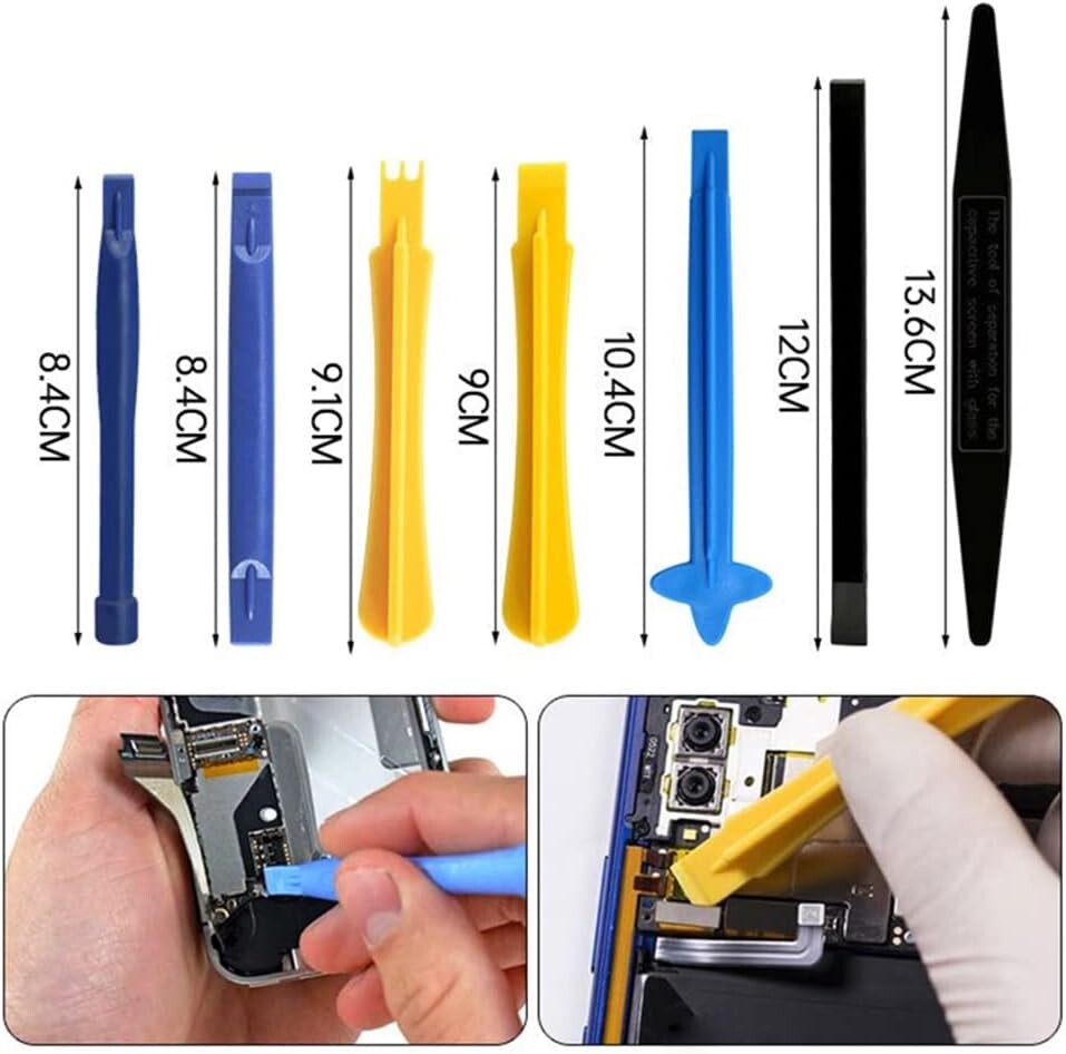 【耐久性】へらは高品質の金属/プラスチックの材料で作られて、硬さも強靭性も強いがある特徴で、頻繁に使って折れにくいです。プラスチックのへらはは特に静電防止が必要なシーンに適用され,形状が異なるためほとんどのシーンで使用可能である。携帯電話のバッテリー、携帯電話のディスプレイ、その他の電子制品を分解するのに使うことができます。比較的小型の電子製品の中には、ネジの取り付けやアクセサリの取り外しを補助するピンセットが必要なものがあります。製品には金属ピンセットが装備されています。