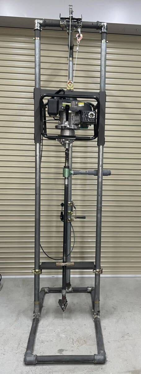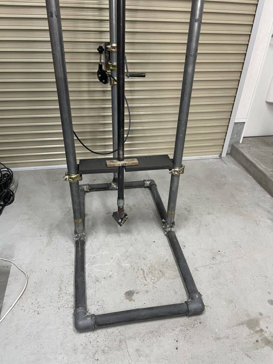 ※発送時、輸送サイズの問題で主柱の3本は別途お客様で用意して下さい。ホームセンターなどで販売している単管を使っています。写真では違う原動機なども使用するため2.6mのものを使用していますが、短いパイプでも使用できます。