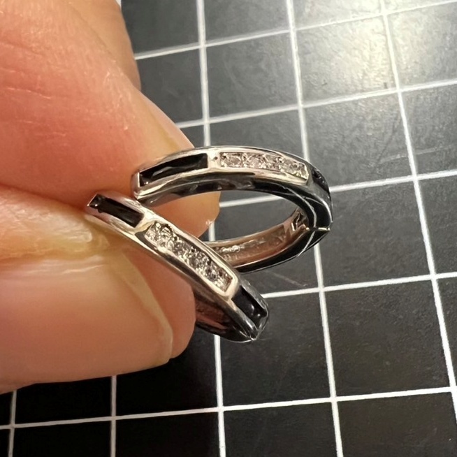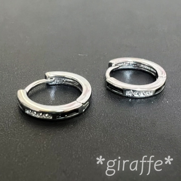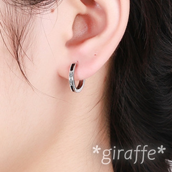 B465 匿名配送 リングピアス レディース ジルコニア ブラック s925 シルバー フープピアス シンプル