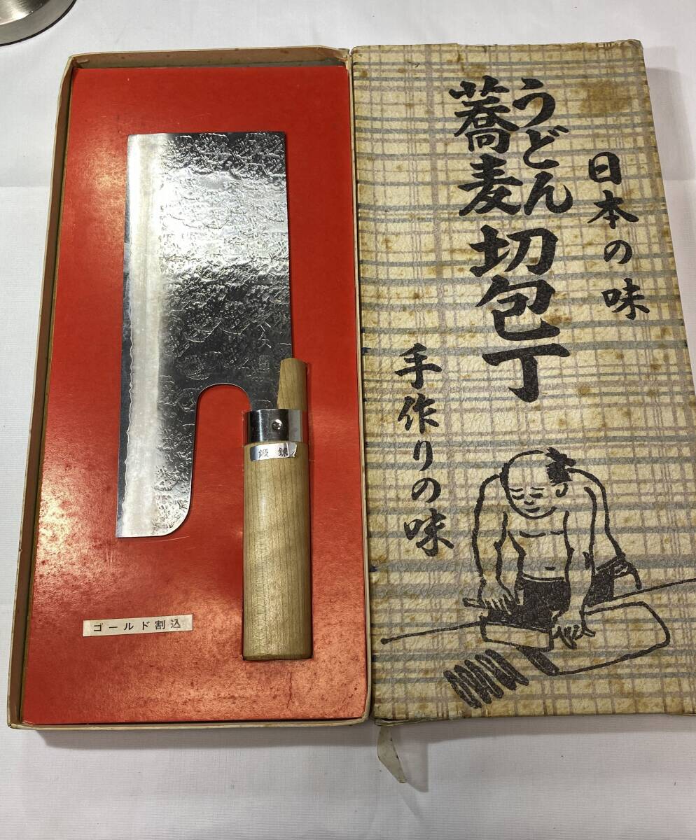 麺切り包丁 うどん・蕎麦切り包丁 越前 かまや 240mm 292g ゴールド割込み 鍛錬 箱はボロボロです