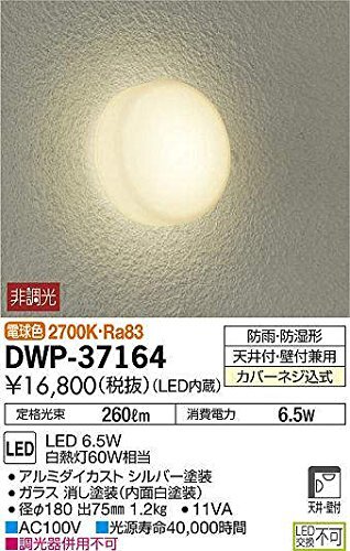 商品名 | 大光電機(DAIKO) アウトドアライト 【LED内蔵】 LED 6.5W 電球色 2700K DWP-37164 | ||