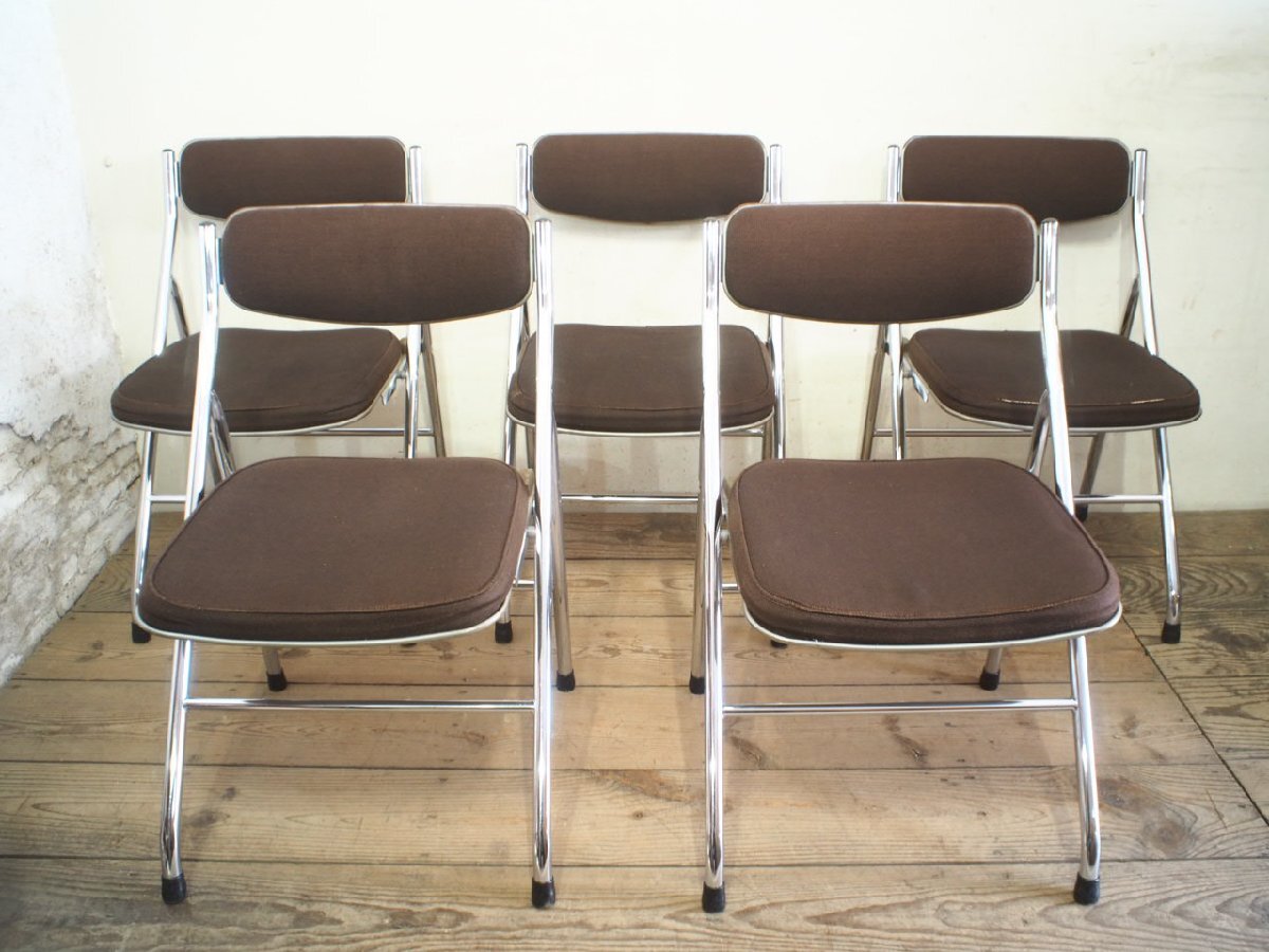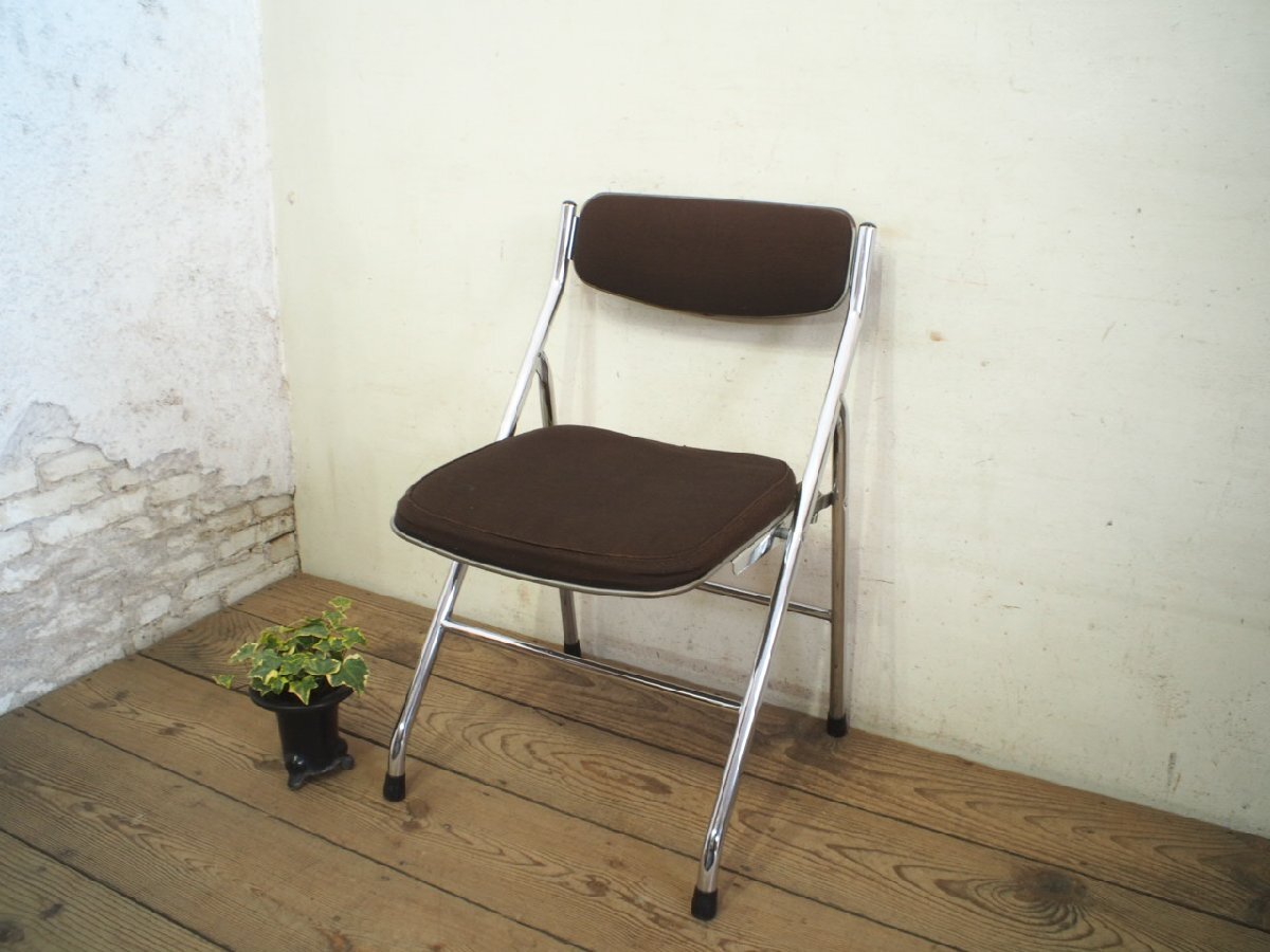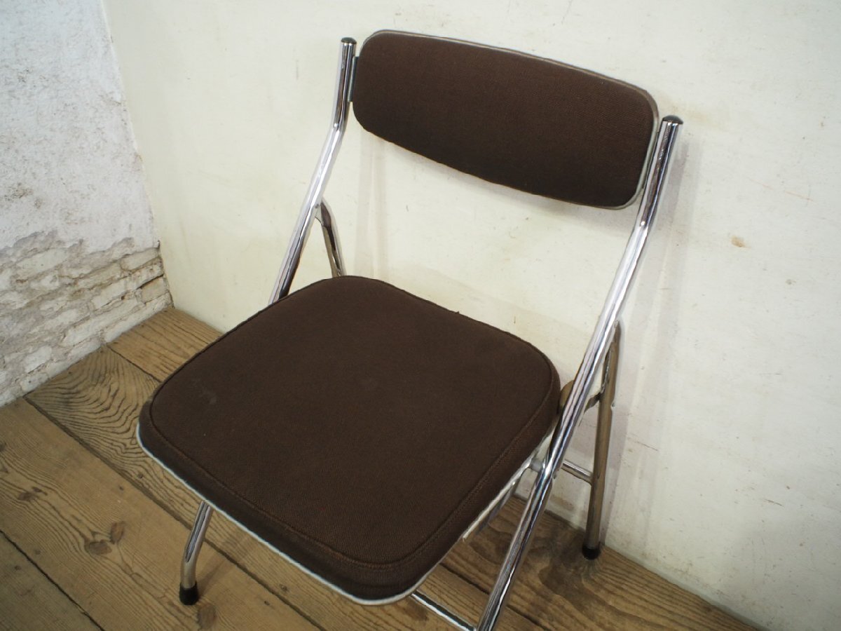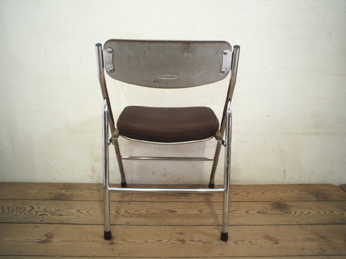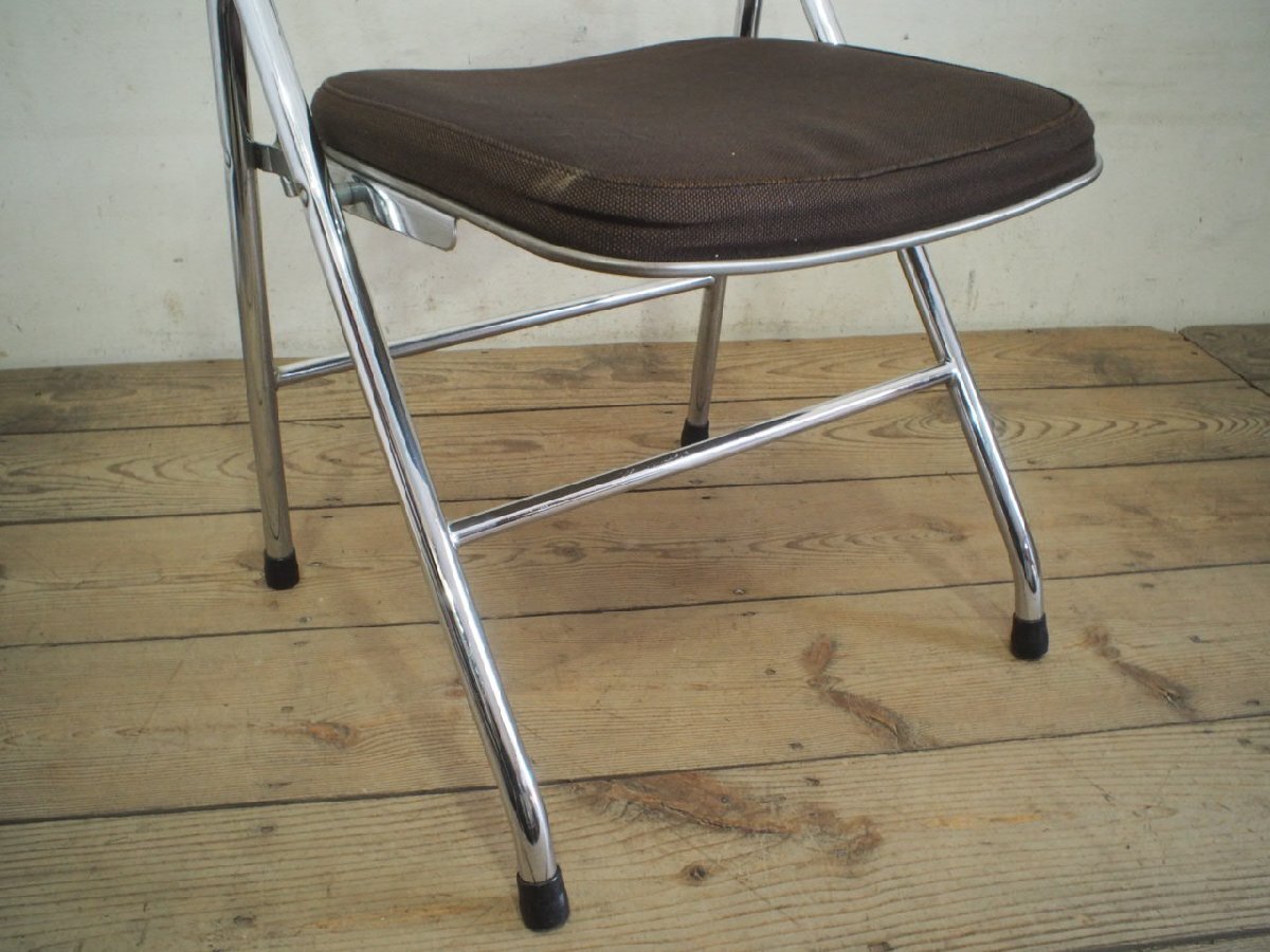 ユC0604◆④ビンテージ◆インダストリアルデザインのレトロな折り畳みチェア◆当時物 工業系 イス 椅子 アイアン カフェ 事務用品A笹4
