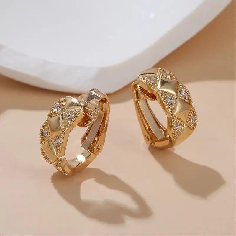 ジルコニアをあしらった、上品な輝きのクリップオンイヤリング。