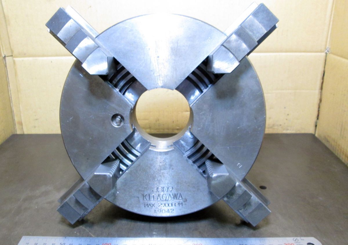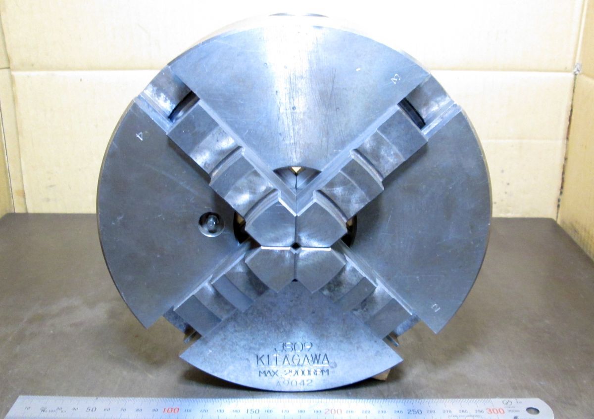 FC138 4爪 スクロールチャック KITAGAWA JS09 丸230 内爪、ハンドル付 分解清掃済み! 中古